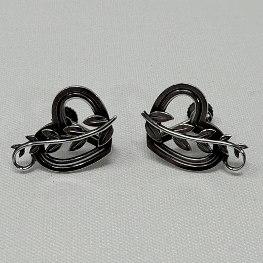 Estate Georg Jensen Sterling Silver Heart Screw back Earrings No 115