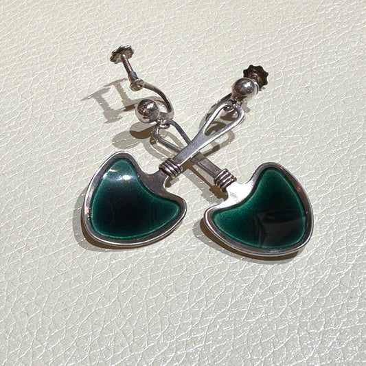 Estate Sterling Silver Green Enamel Earrings Screwback by Atelier Borgilia