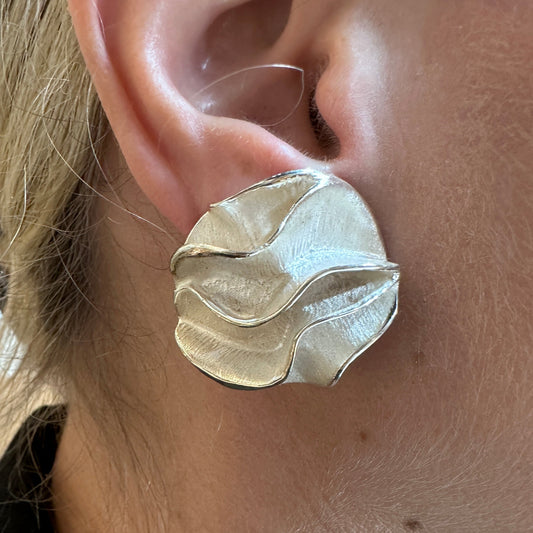 Estate Sterling Silver Modernist Clip-on Earrings by Janet Gabriel