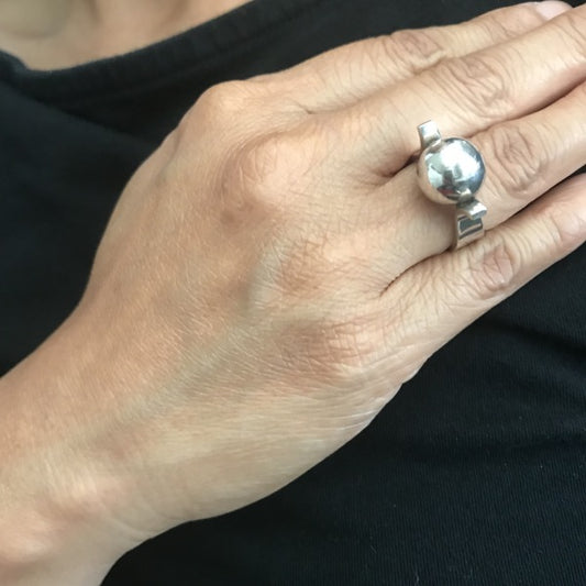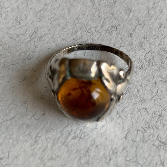 Estate Georg Jensen Early Sterling Silver Ring with Amber Design No 11A