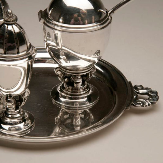 Georg Jensen Sterling Silver Rare "Acorn" Cruet Set No. 741 by Johan Rohde