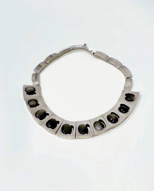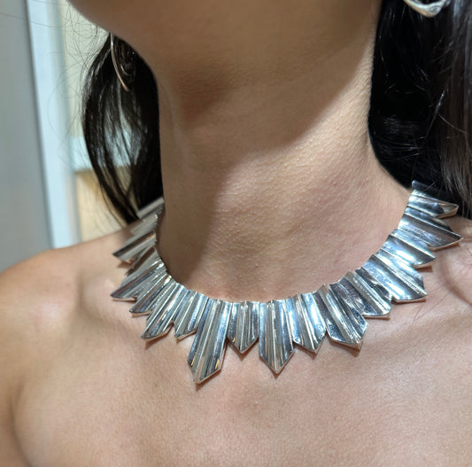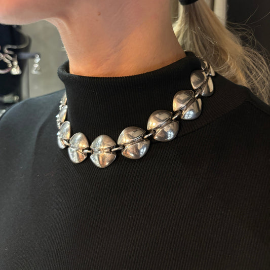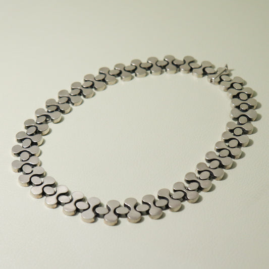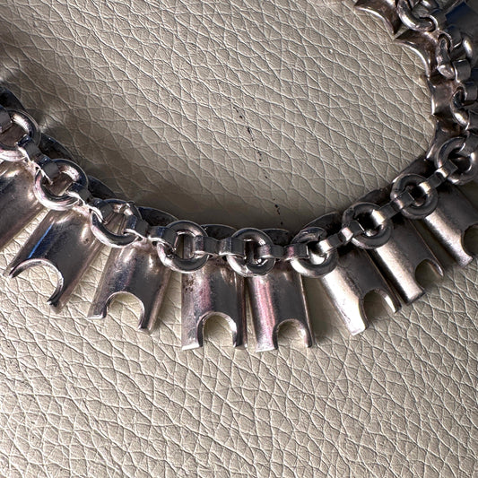 Estate Sterling Silver Taxco Modernist Necklace with Concave Segments