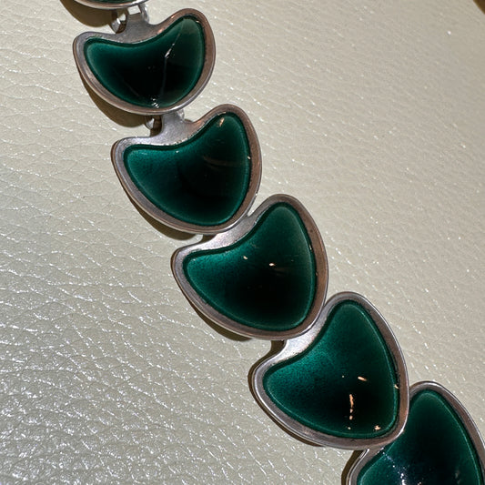 Estate Sterling Silver Green Enamel Necklace by Atelier Borgilia