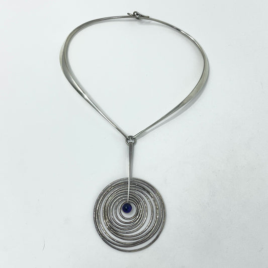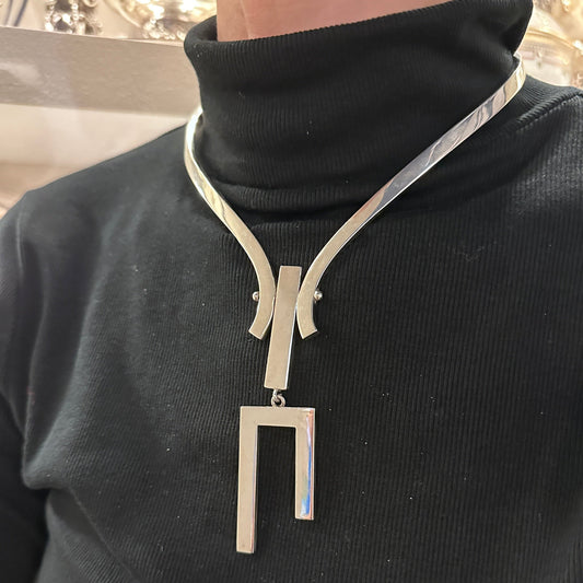 Estate Sterling Silver Torque Necklace with Geometric Hinged Pendant by Miguel Pineda