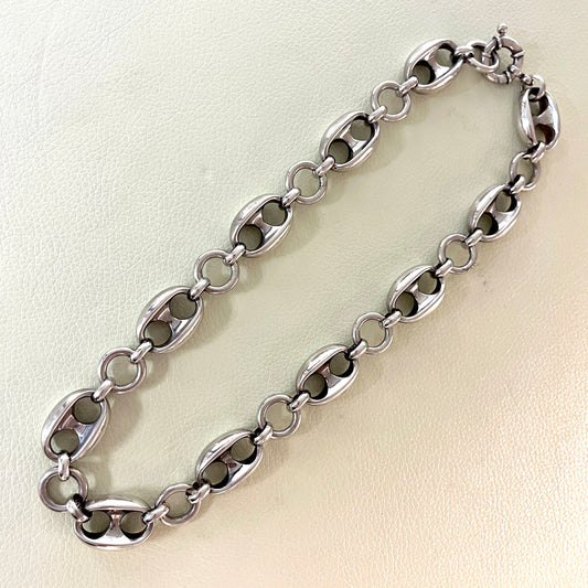 Estate Sterling Silver Puffy Mariner Chain Necklace