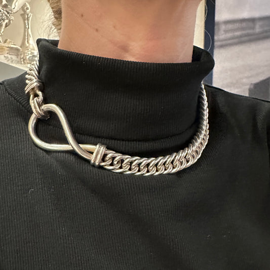 Estate Sterling Silver Heavy Curb Chain Necklace with Two-Twist Detail by Pomellato