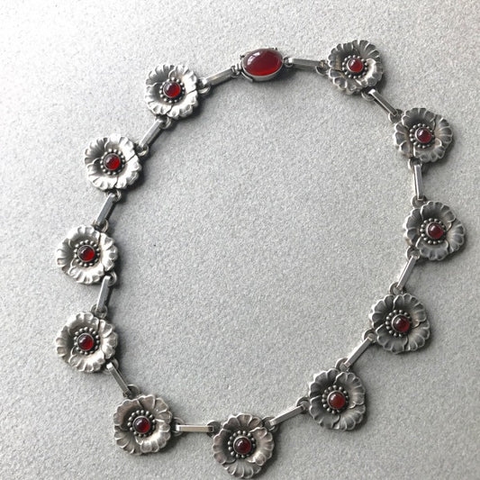 Georg Jensen Sterling Silver Flower Necklace No. 30A With Carnelian Cabochons