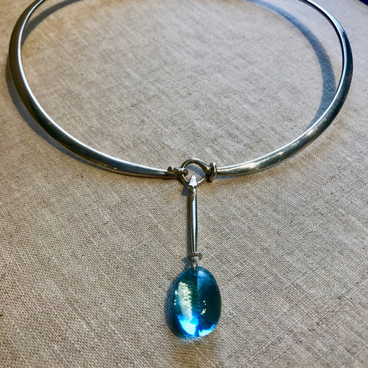 Georg Jensen Sterling Silver "Dewdrop" Pendant in Blue Topaz by Torun