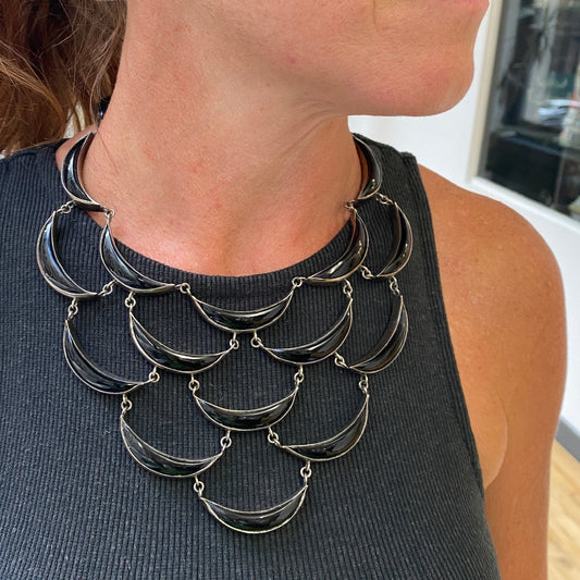 Antonio Pineda Sterling Silver and Onyx Bib Necklace