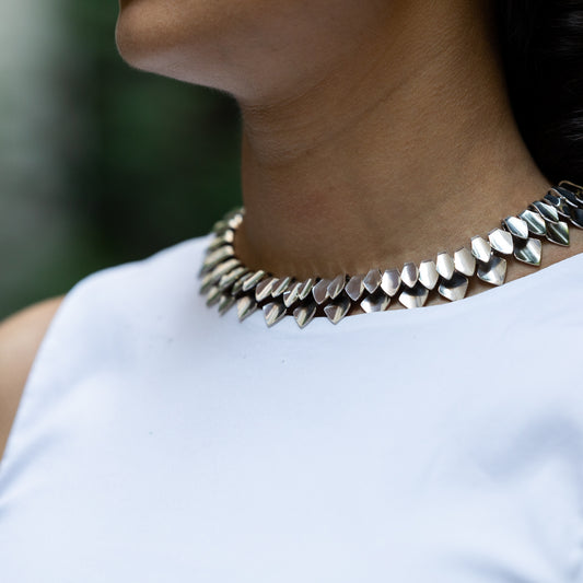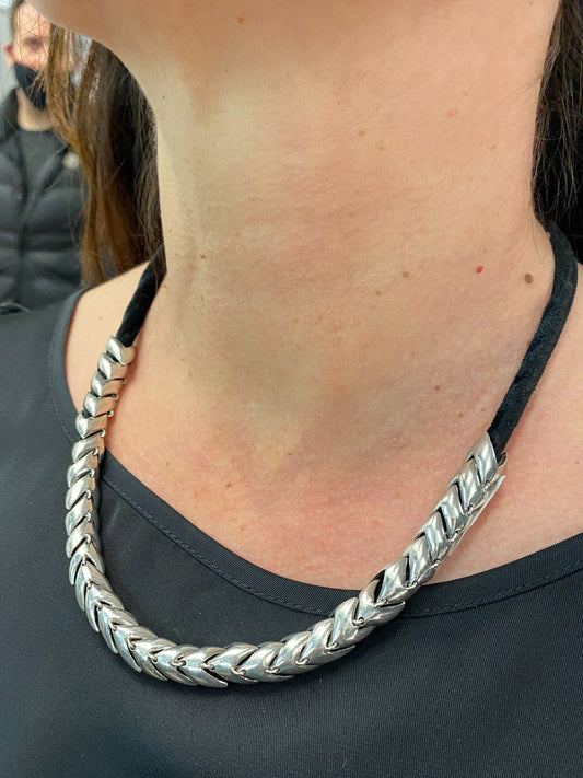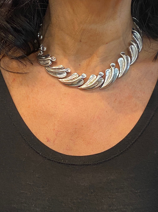 Estate Antonio Pineda .970 Silver Leaf Choker Necklace