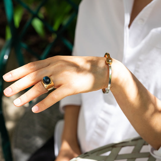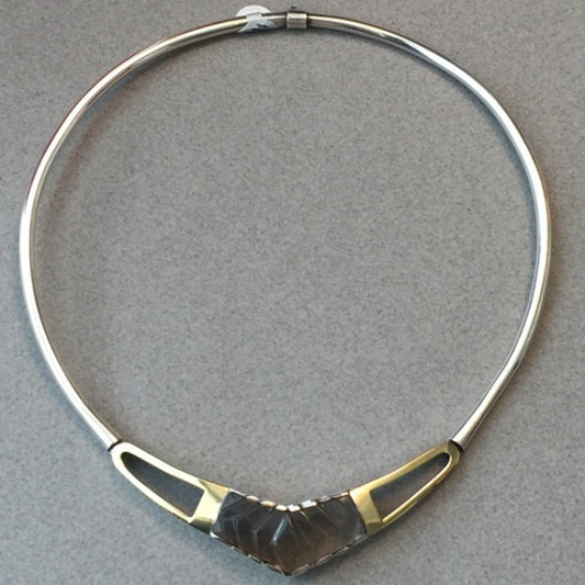Estate Roberto Laender Sterling Silver and 18K Gold Neck Ring with Smoky Quartz
