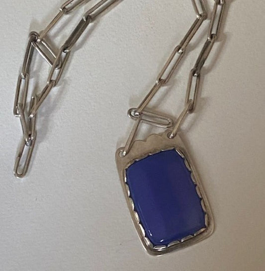 Porter Blanchard Silver Link Necklace with Silver and Blue Chalcedony Pendant