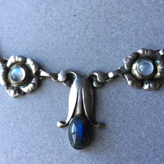 Georg Jensen 830 Silver Necklace No. 7 with Labradorite and Moonstones