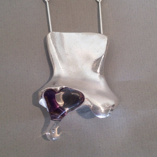 Georg Jensen Sterling Silver Neck Ring No 410 with Amethyst Drop No 133 by Vivianna Torun