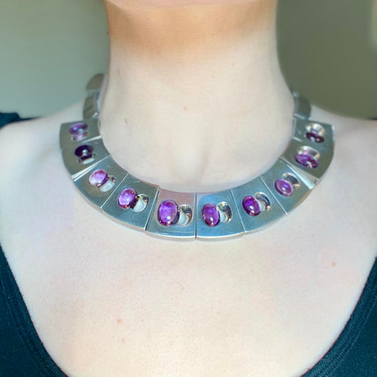 Estate Antonio Pineda Silver and Amethyst Collar Necklace