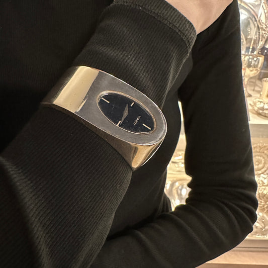 Estate Sterling Silver Tissot Watch Cuff Bracelet with Oval face by Pekka Piekainen