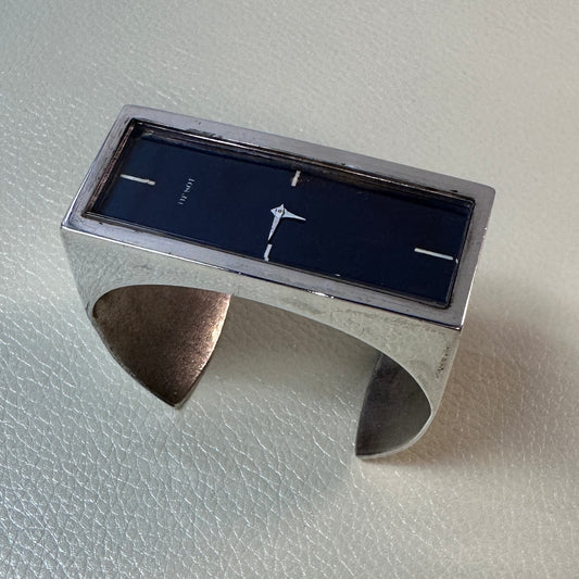 Estate Sterling Silver Tissot Watch Cuff Bracelet with Rectangle face by Pekka Piekainen