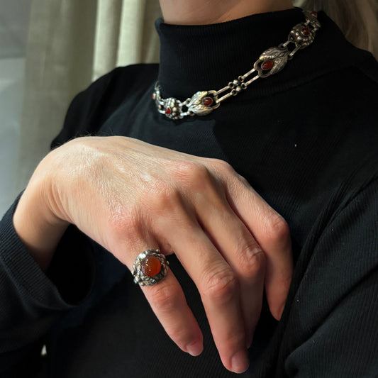 Estate Georg Jensen 830 Silver French import Hallmarks Carnelian Ring No 11 (early marks 1920's)