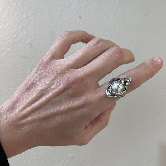 Estate Kalo Hand Wrought Sterling Silver Art Nouveau Blister Pearl Ring by Bjarne Axness