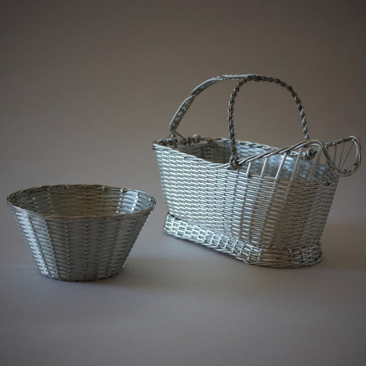 Estate Christofle France Silver Plated "Perles" Woven Bon-Bon Basket