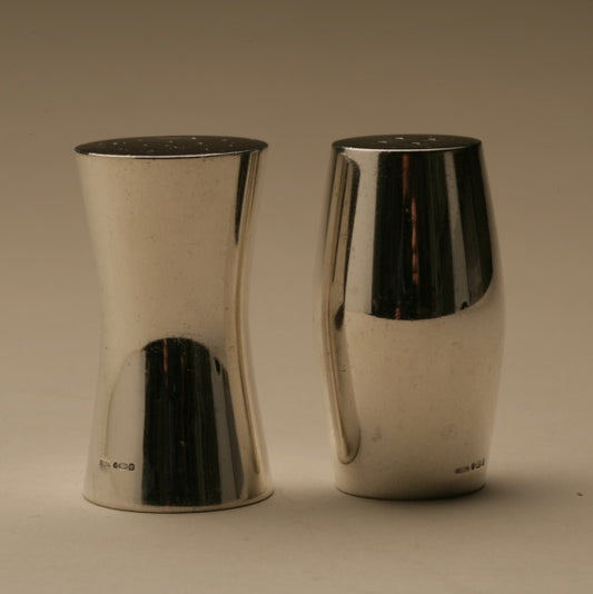 Estate Georg Jensen Sterling Silver Modernist Barrel Salt & Pepper Set by Hans Henriksen No. 1031