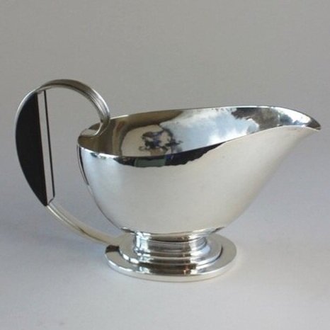 Estate Georg Jensen Sterling Silver Art Deco Sauce Boat with Ebony Handle by Gustav Pedersen No. 766