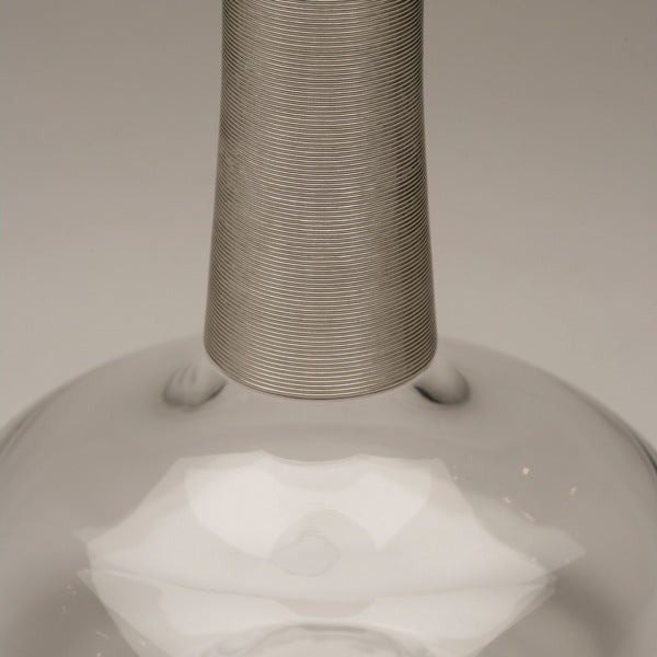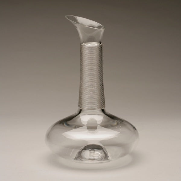 The silver thread is hand wrapped around the entire neck of the carafe.