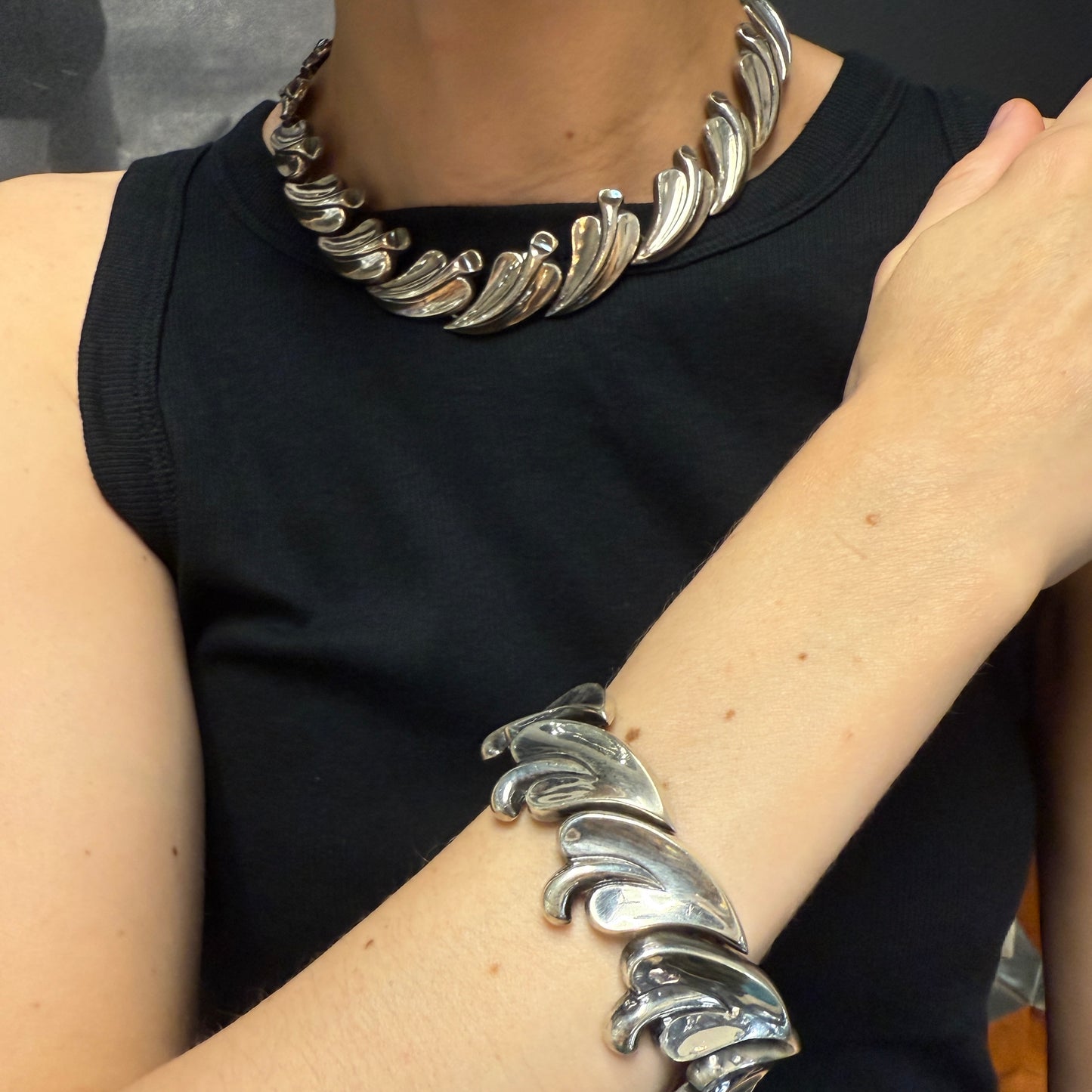 Estate Antonio Pineda 970 Silver Leaf Bracelet