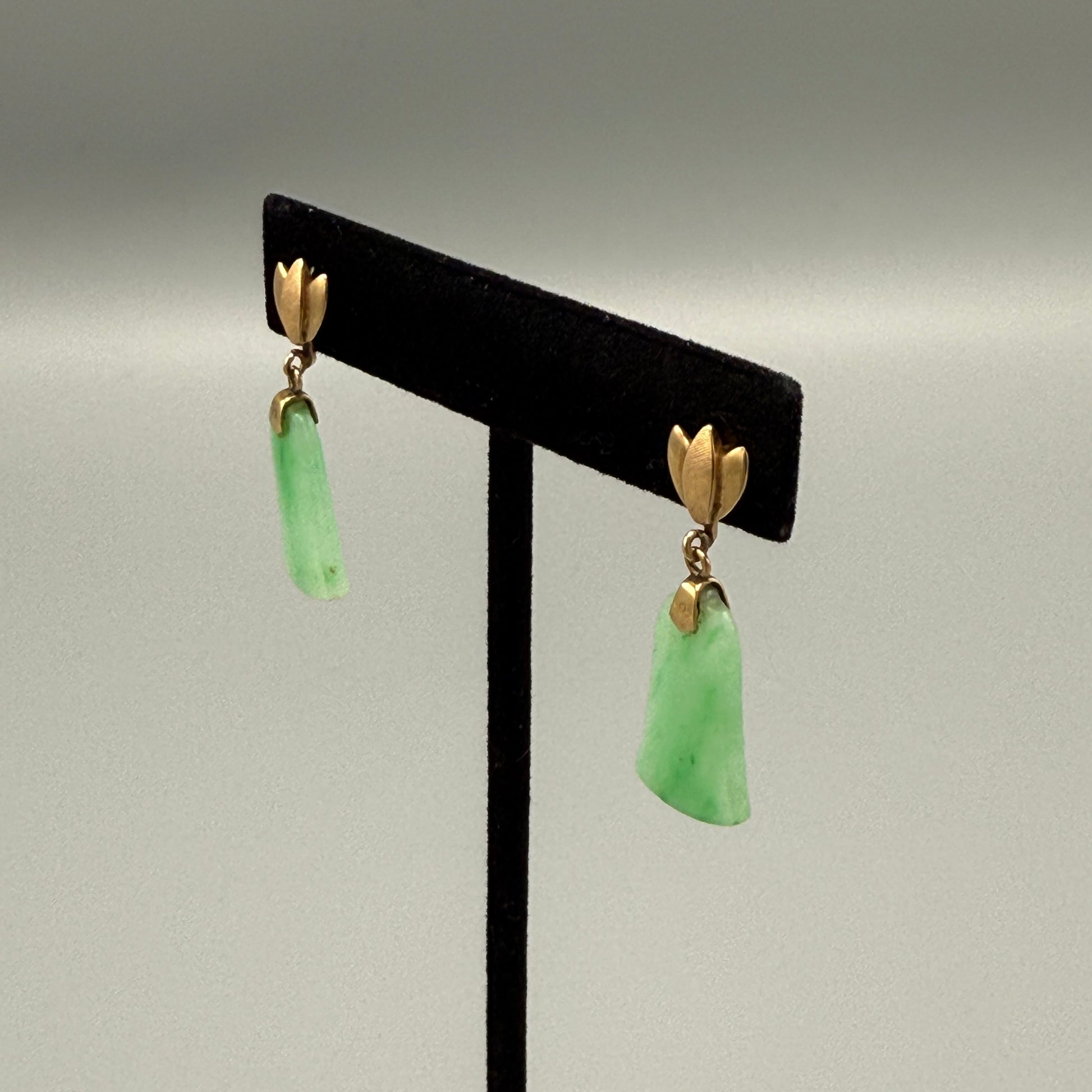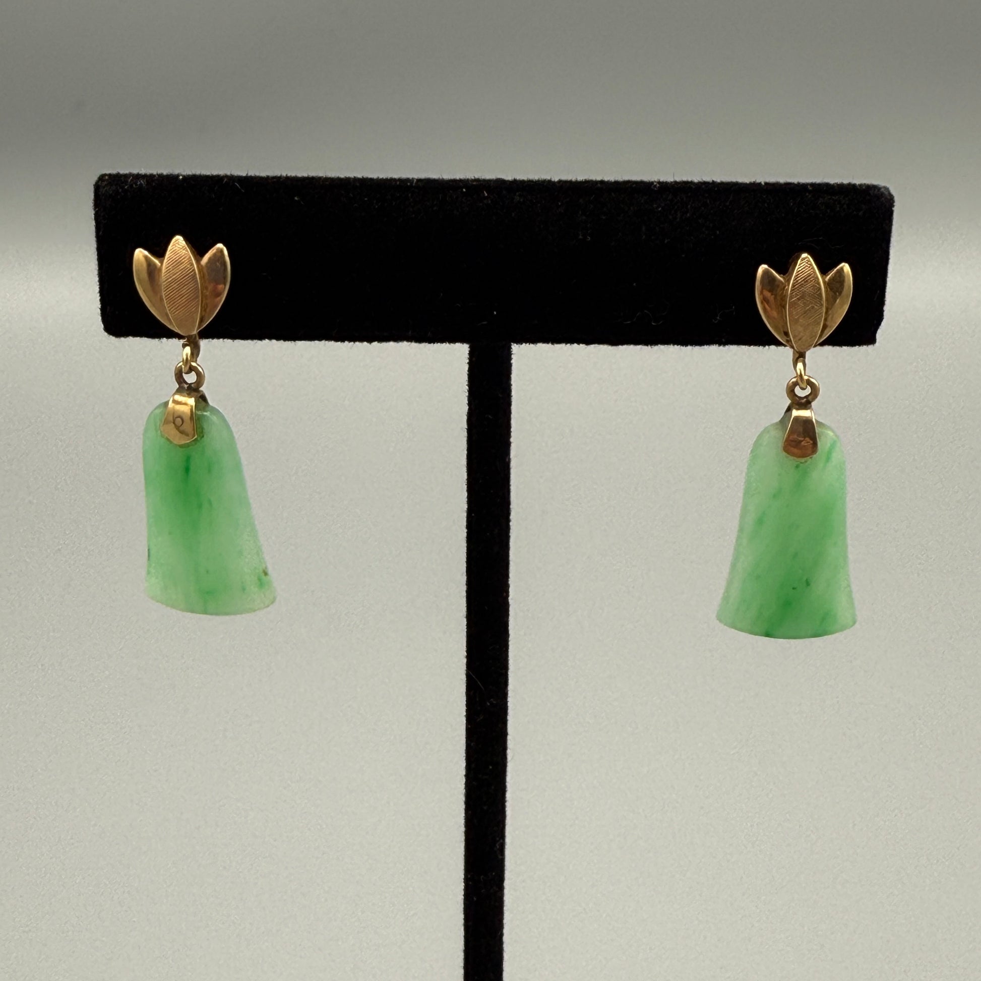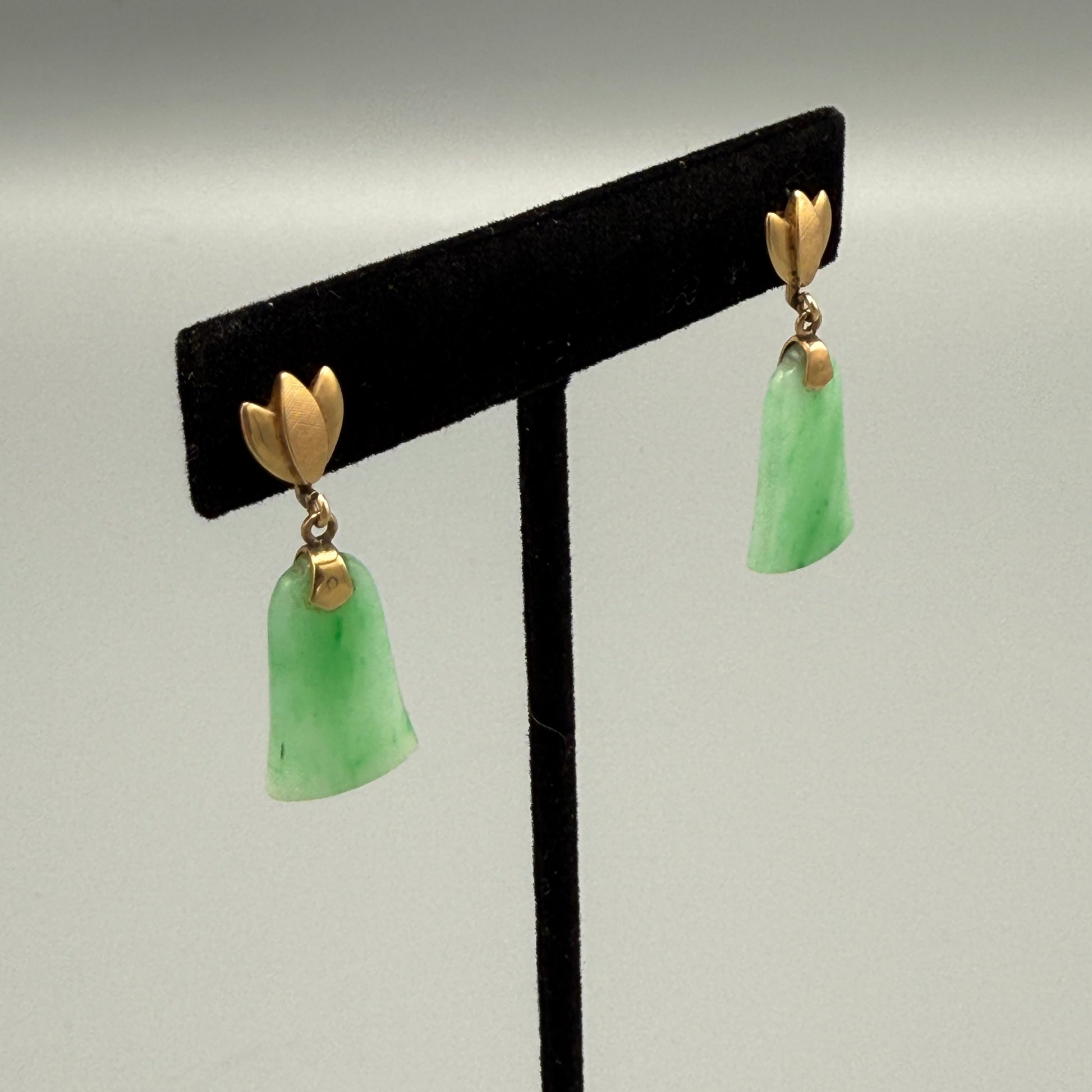 Estate Apple Green Jadeite Bell Shaped Earrings in 14kt Gold