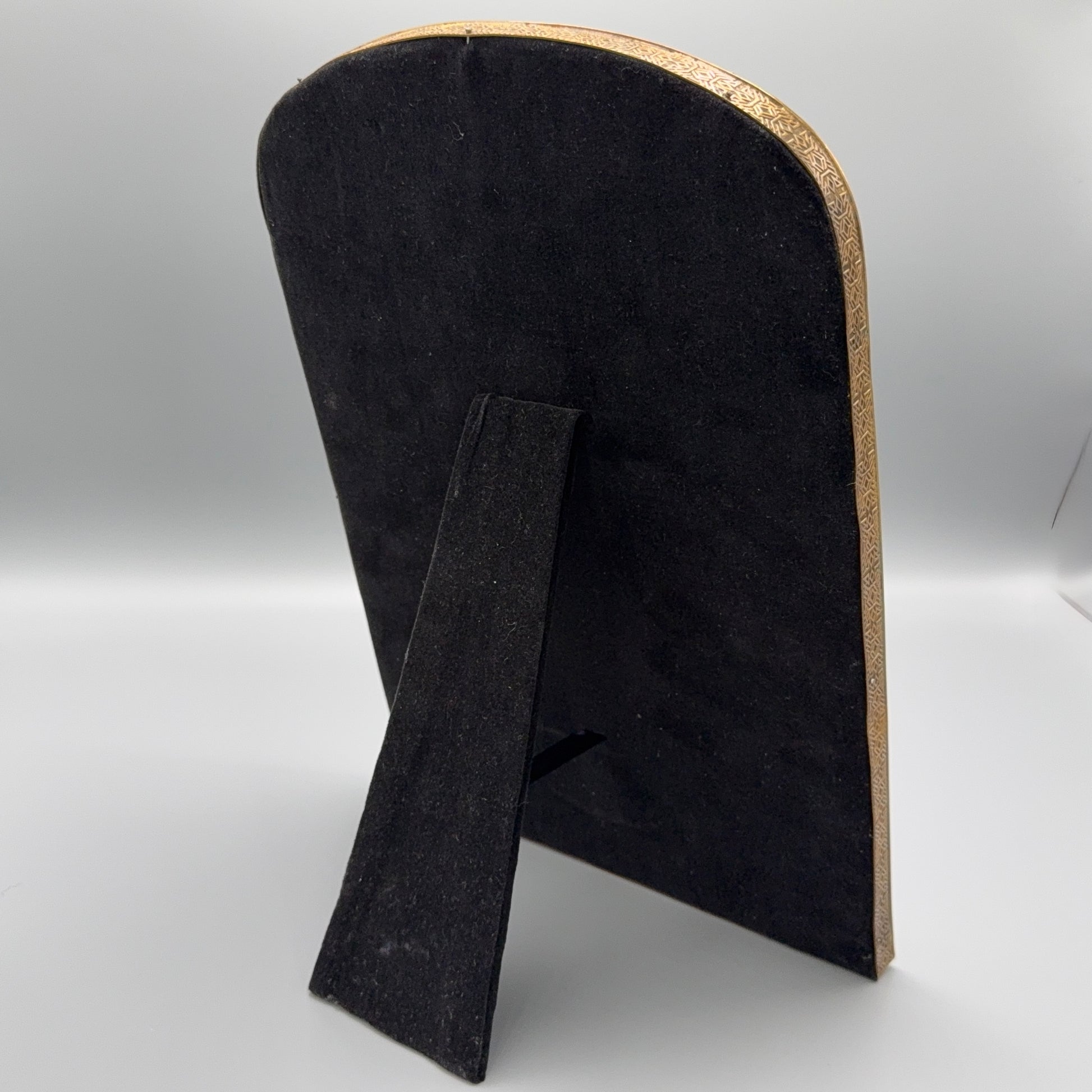 This distinguished frame showcases authentic bronze and jade elements from the Qing dynasty period, featuring a sophisticated celadon palette complemented by rich aubergine velvet backing. Designed to display an 8"x10" photograph, the piece measures 14.25"L x 10"W, making it an elegant addition to any gallery wall or shelf. Dating to the 1920s, this vintage treasure exhibits the craftsmanship characteristic of its era and remains in commendable condition, offering collectors and design enthusiasts a refined example of Asian decorative arts.