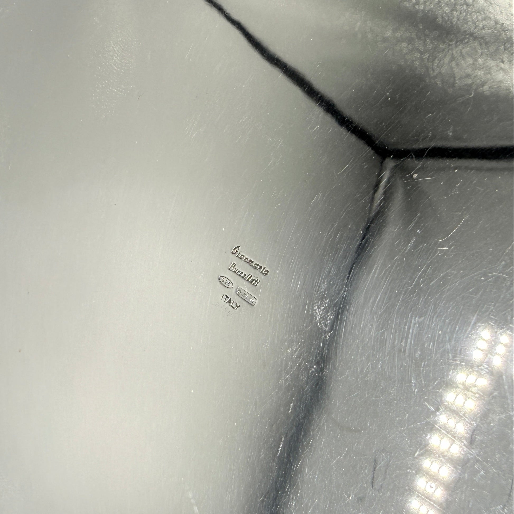 Crafted through meticulous hand-hammering techniques, this Buccellati centerpiece bowl showcases the hallmark artistry of fine metalwork. The scalloped edge adds refined sophistication to any table setting. Presented in its original fitted box, making it an ideal choice for collectors and those seeking authentic estate jewelry craftsmanship.