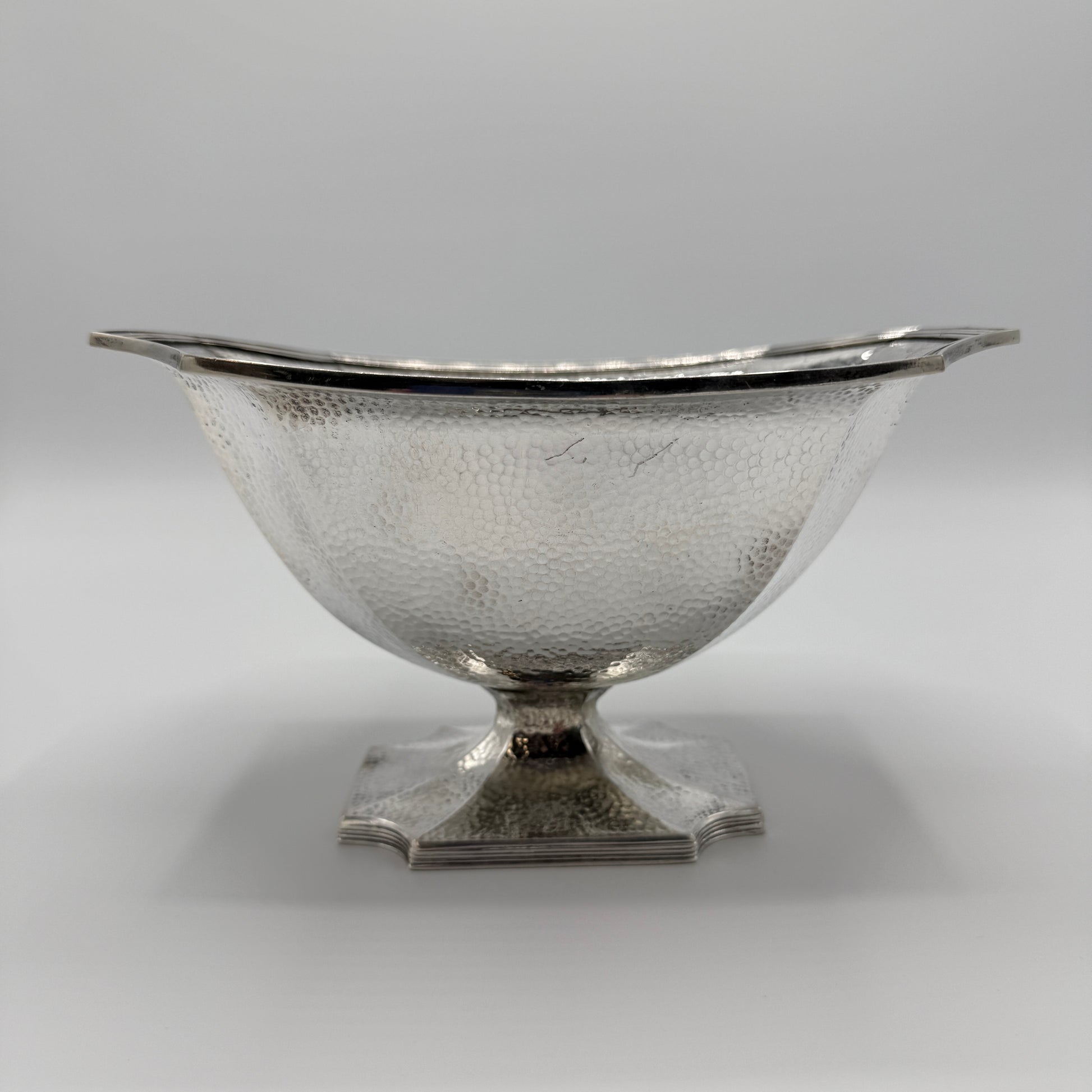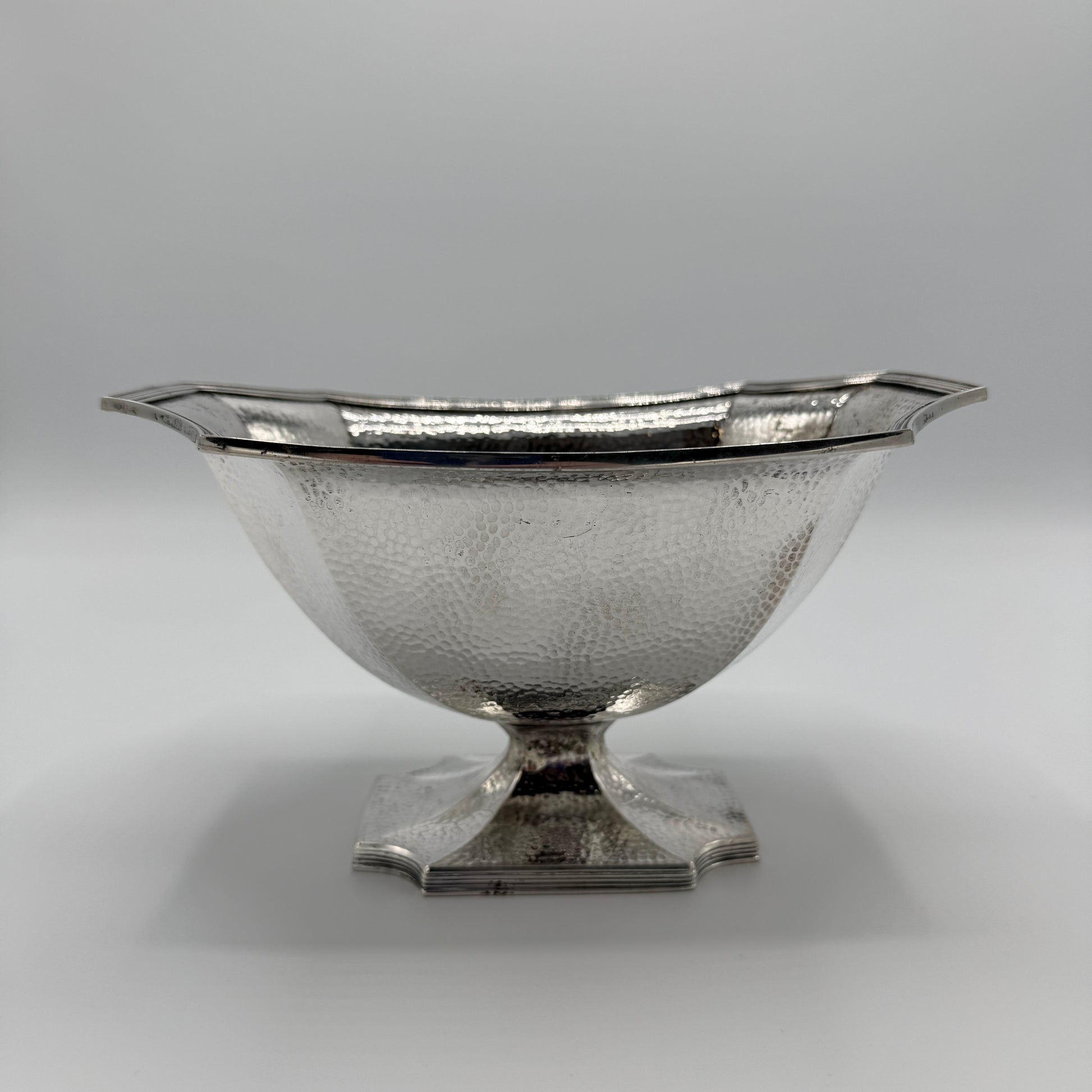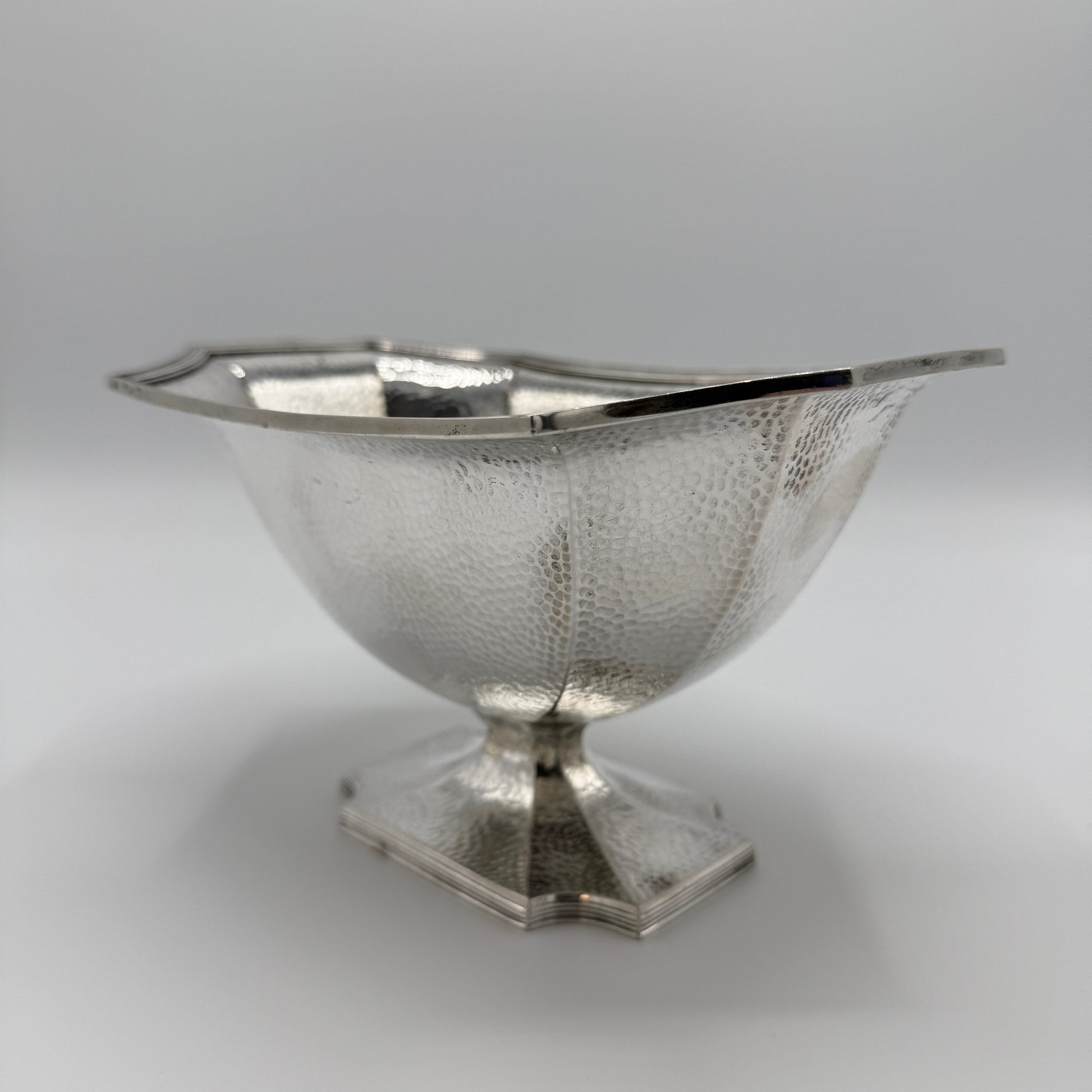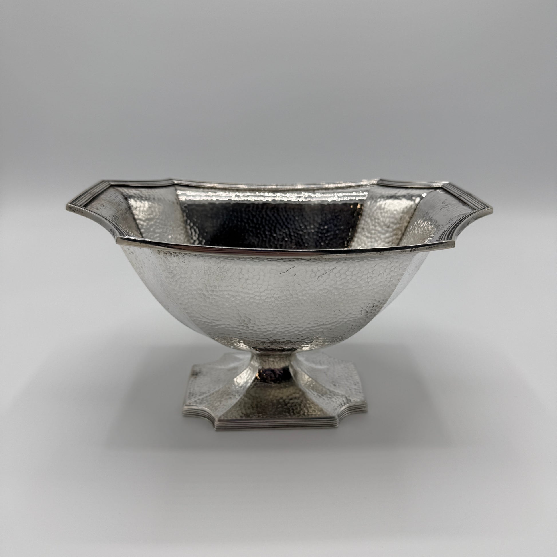 This refined sterling silver bowl showcases Buccellati's signature dimpled craftsmanship, creating an elegant surface that catches light beautifully. The footed base elevates the piece, making it an ideal choice for displaying on a dining table, sideboard, or shelf as a sophisticated decorative accent or functional serving vessel.
