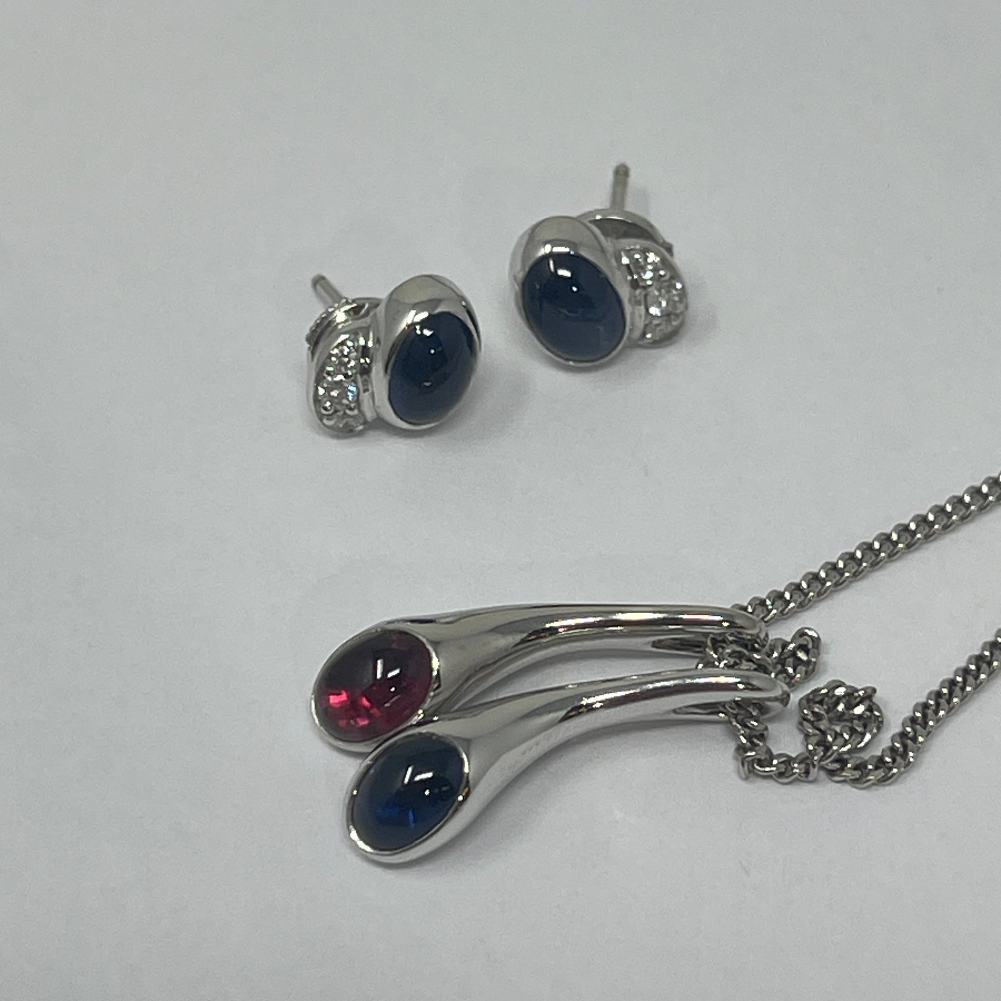 Georg Jensen 18K White Gold “Carnival” Sapphire Earrings with Diamonds