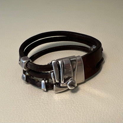 The leather has a warm, rich color and the bracelet is in excellent condition.