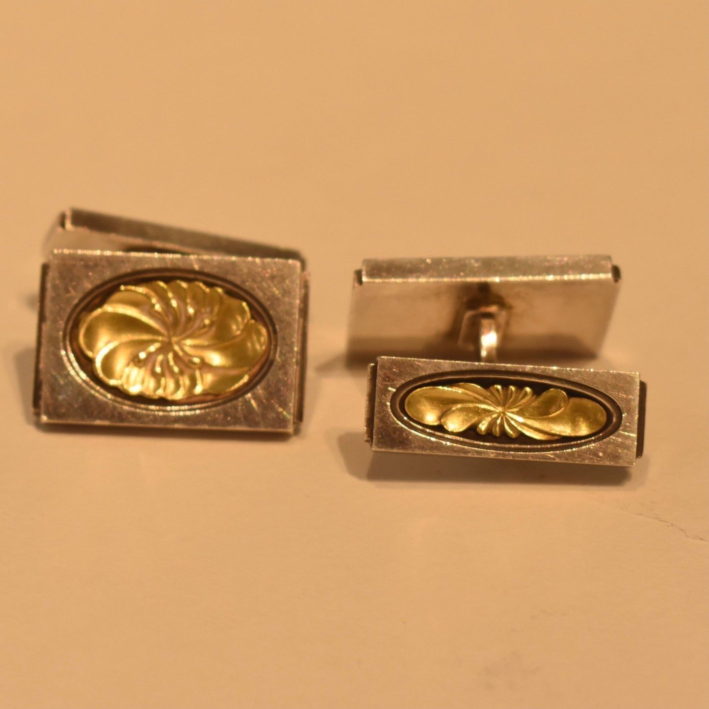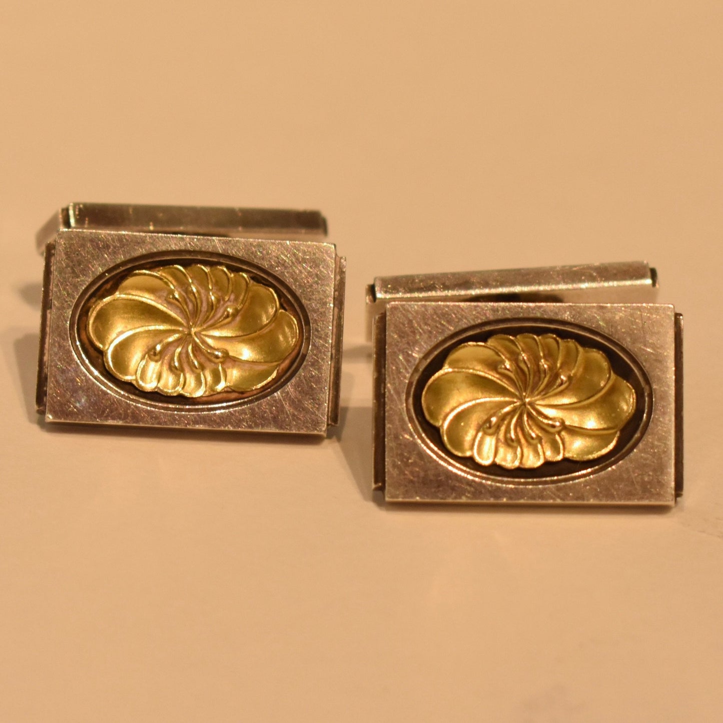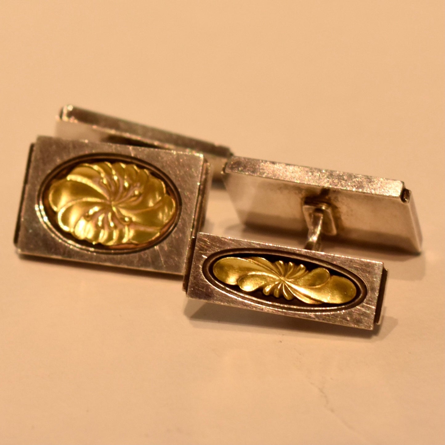 Estate Georg Jensen Sterling Silver and Gold Cufflinks by Henry Pilstrup No. 59A