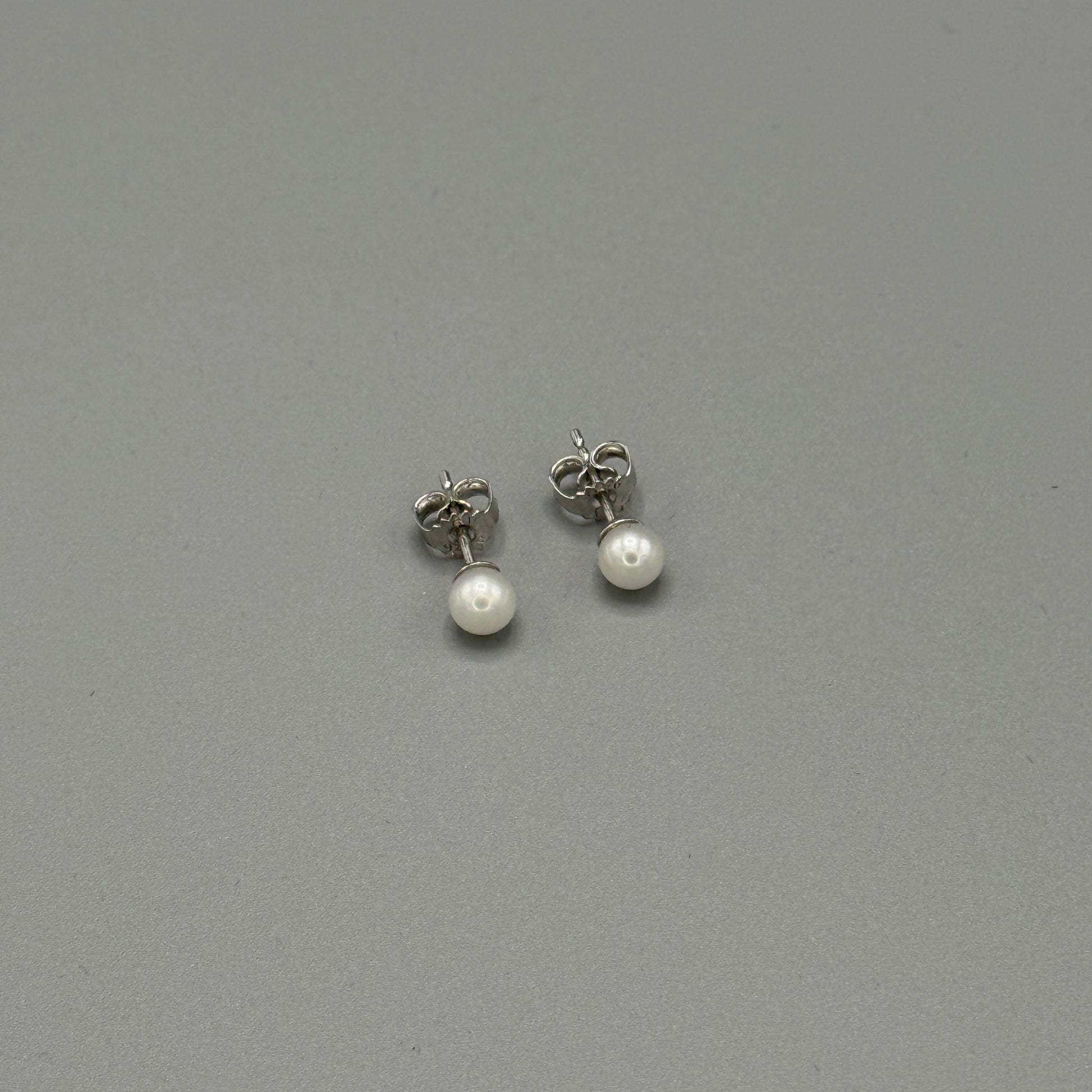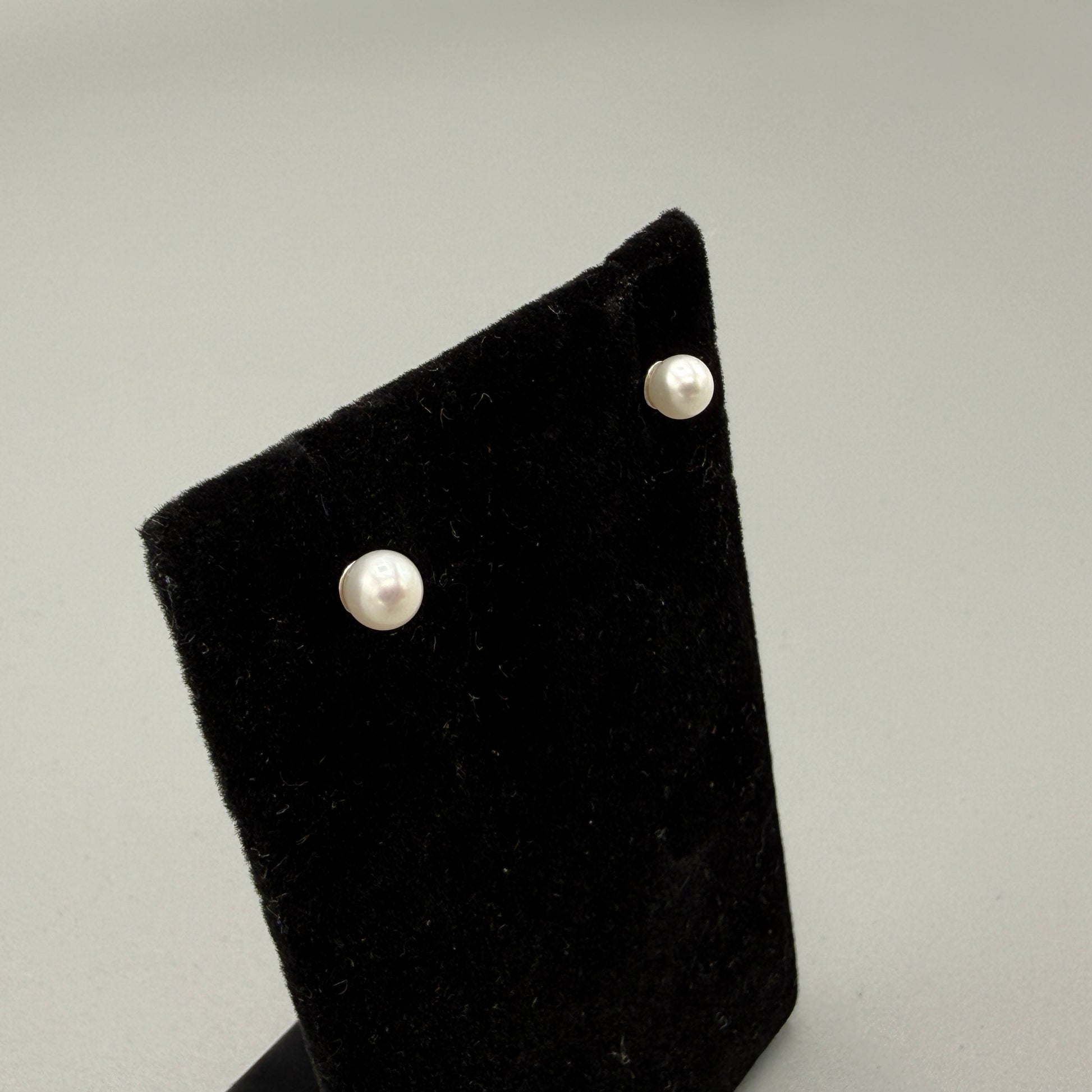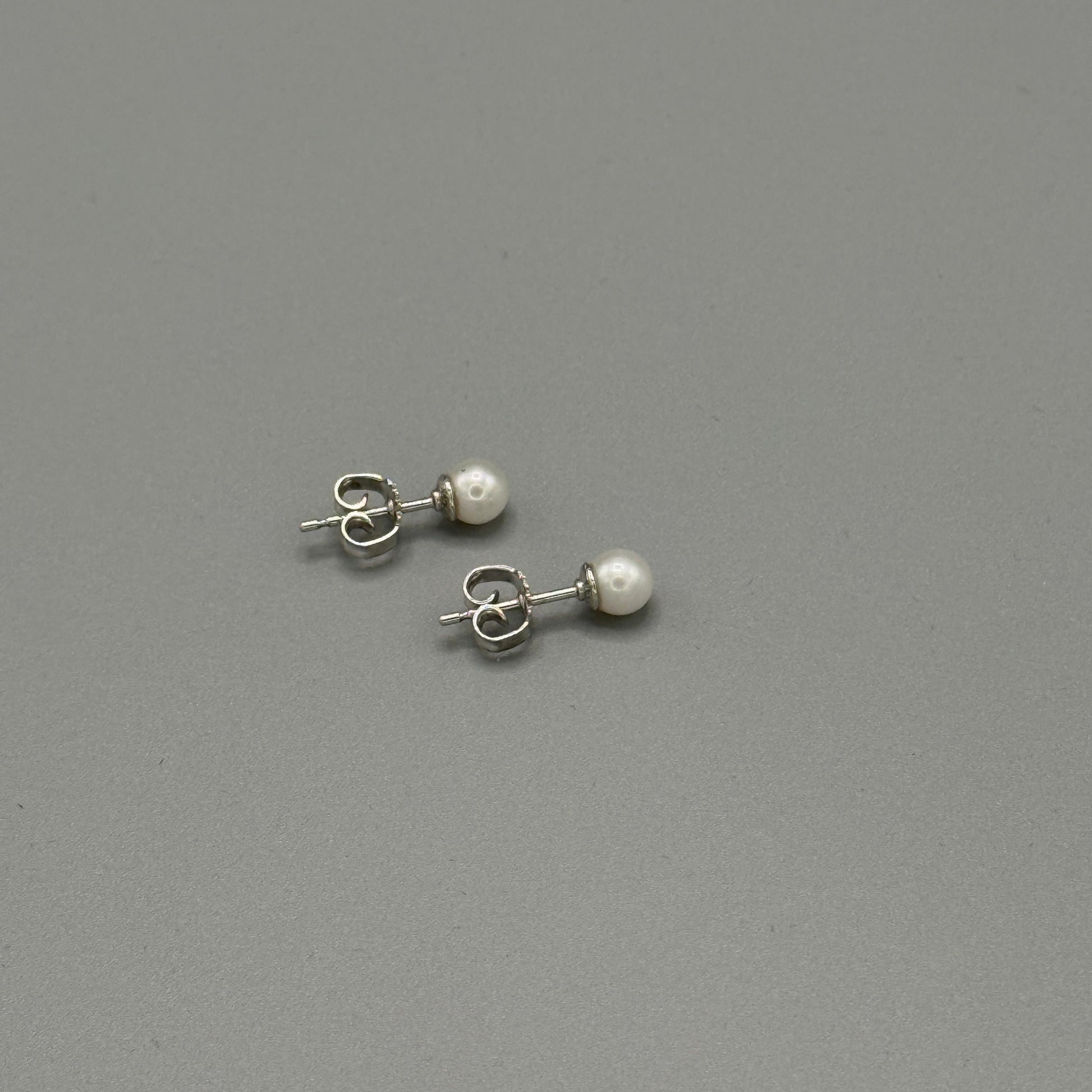 Refined white pearl earrings crafted in sterling silver. Stamped GJ 925 S, these pieces offer elegant durability for daily use.
