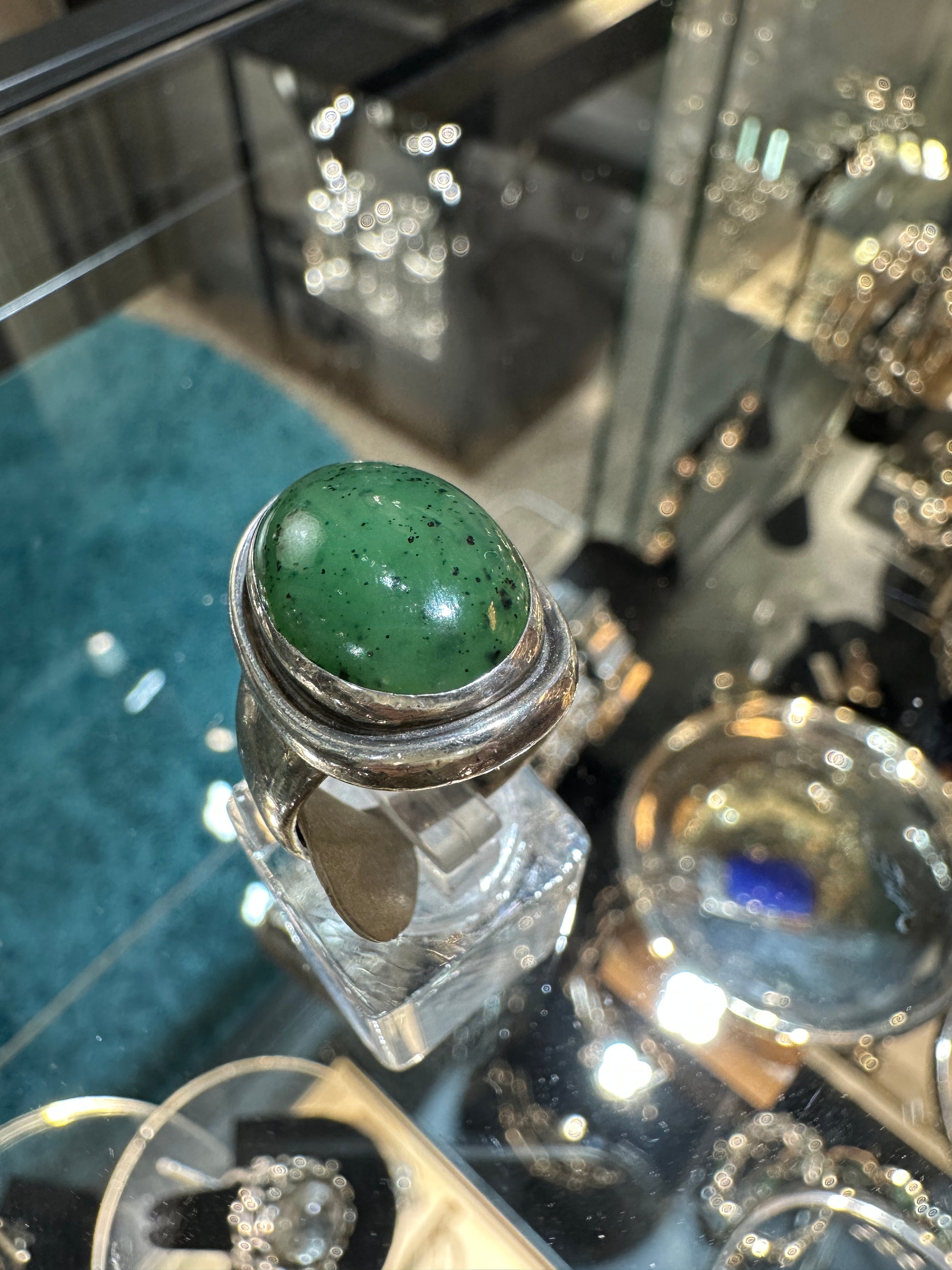 Estate Georg Jensen Sterling Silver Jade Ring by Harald Nielsen No 46A