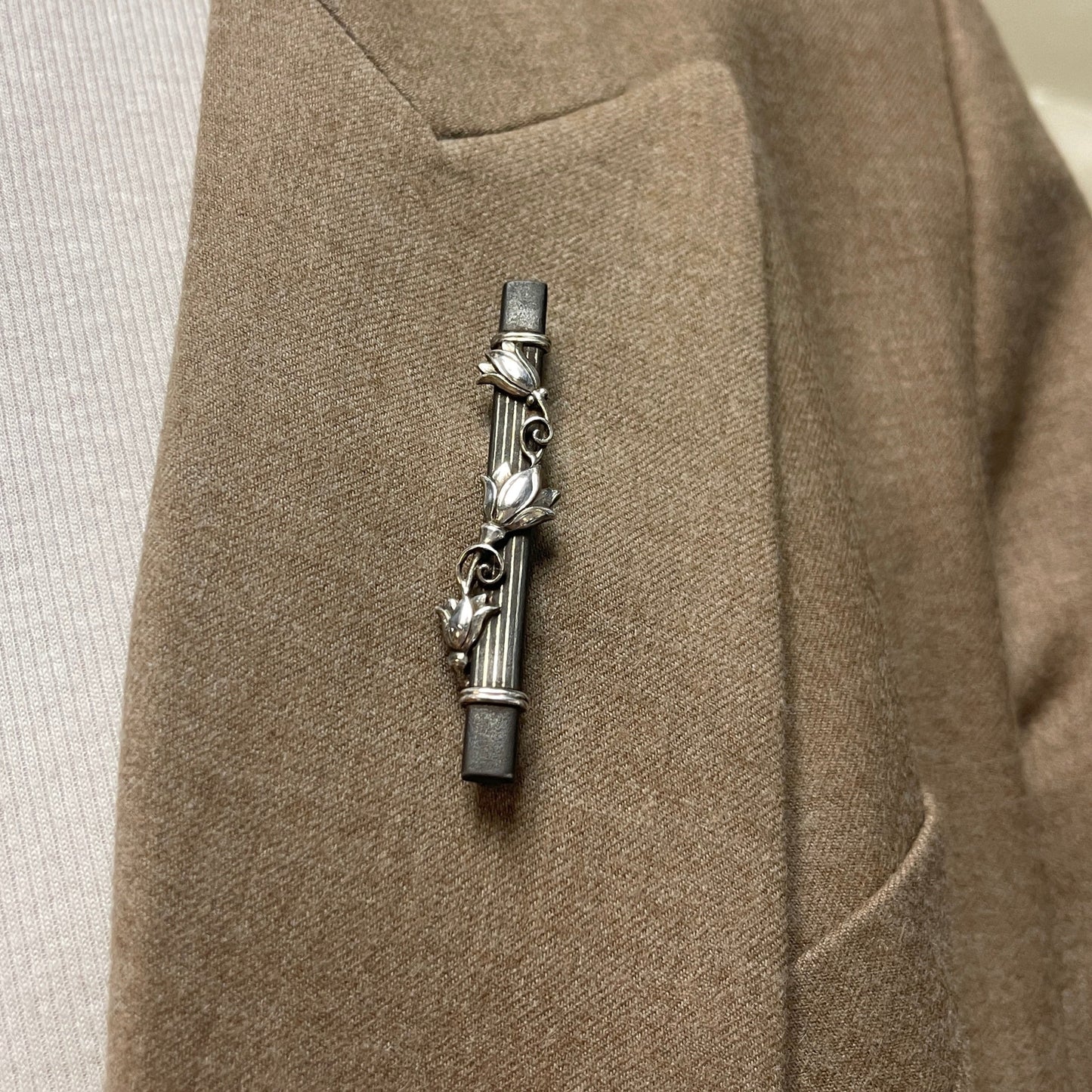 Estate Georg Jensen Iron and Sterling Silver Foliage Brooch No 5018 by Gundorph Albertus