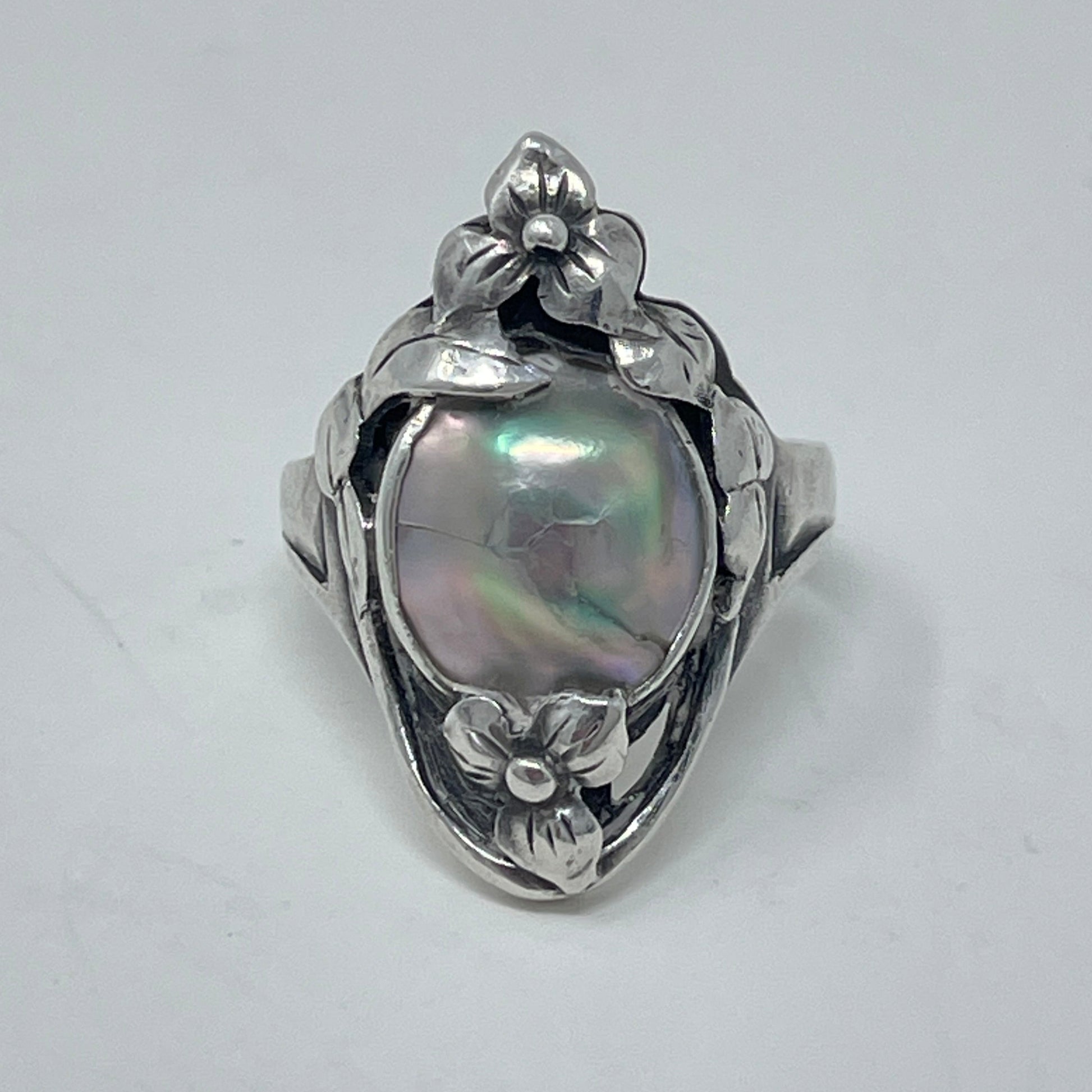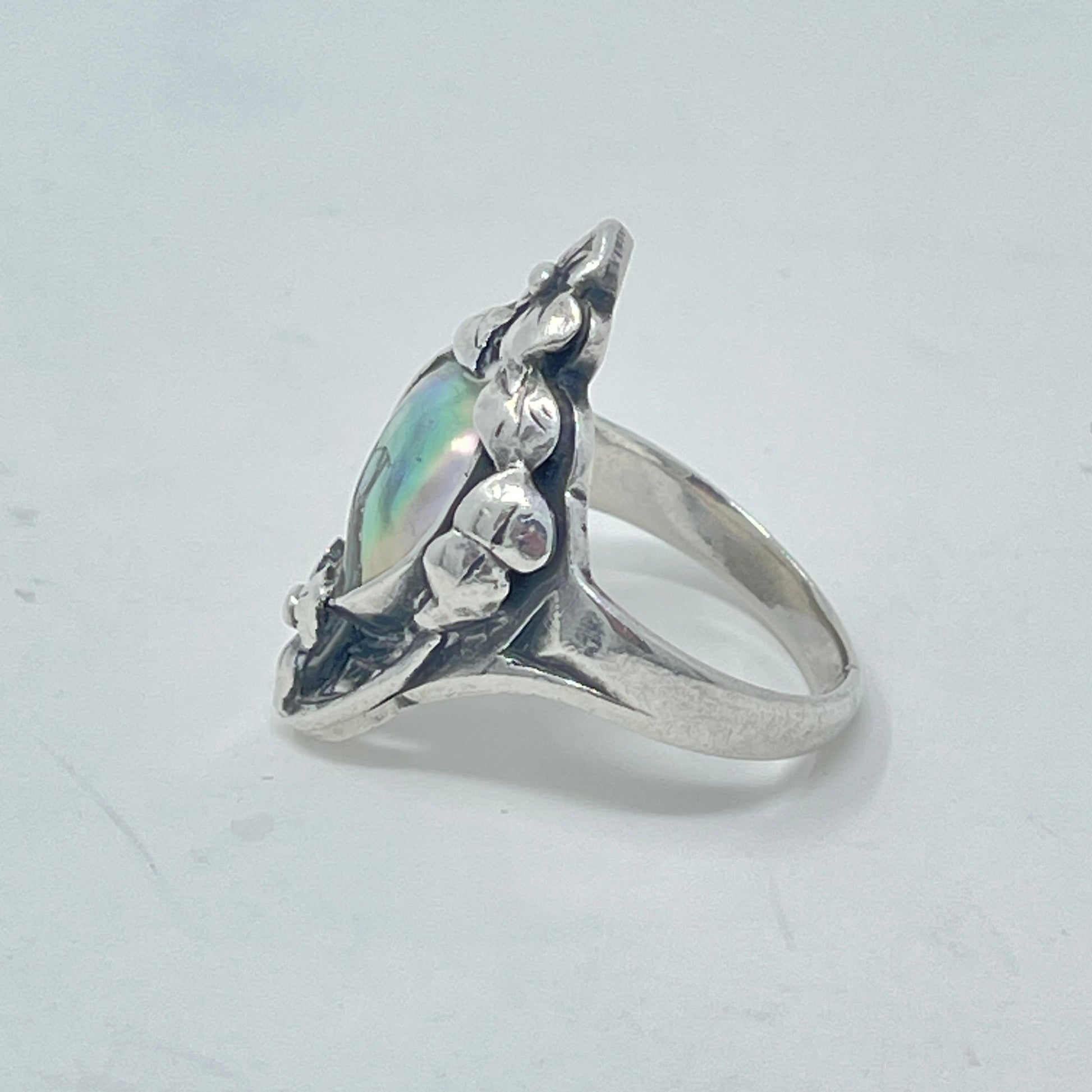Estate Kalo Hand Wrought Sterling Silver Art Nouveau Blister Pearl Ring by Bjarne Axness