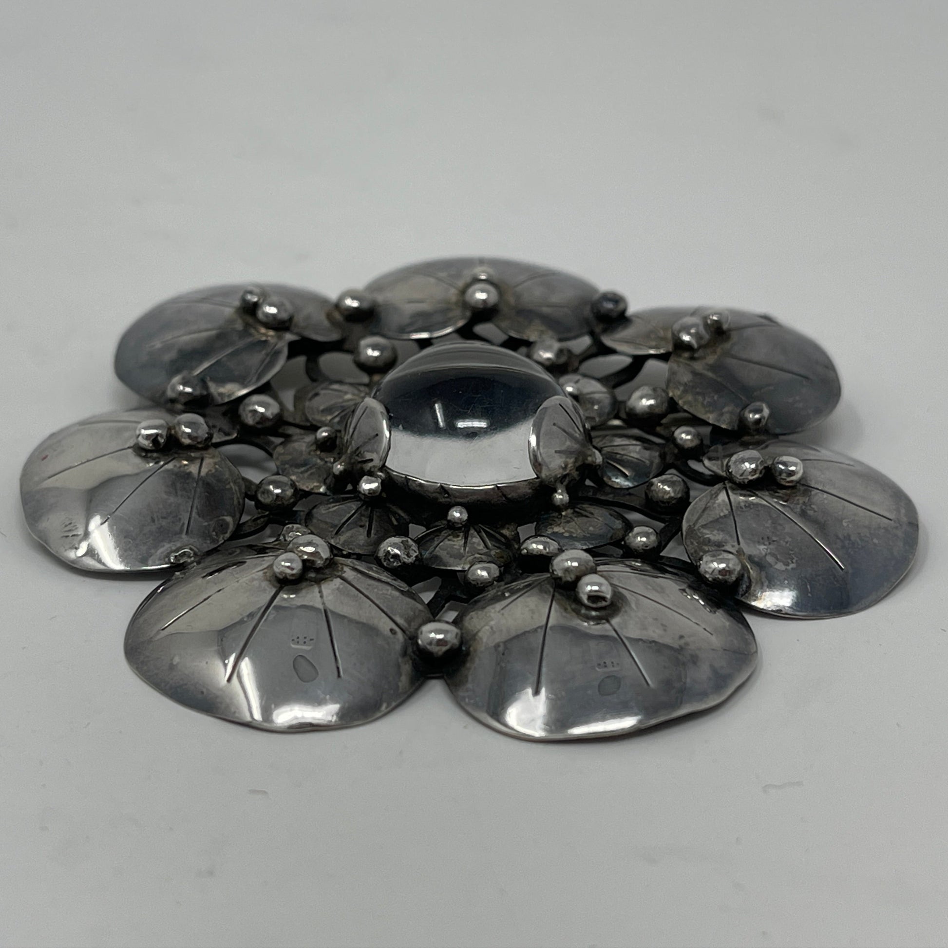 Impressive brooch designed by Mary Gage with stamped marks.
