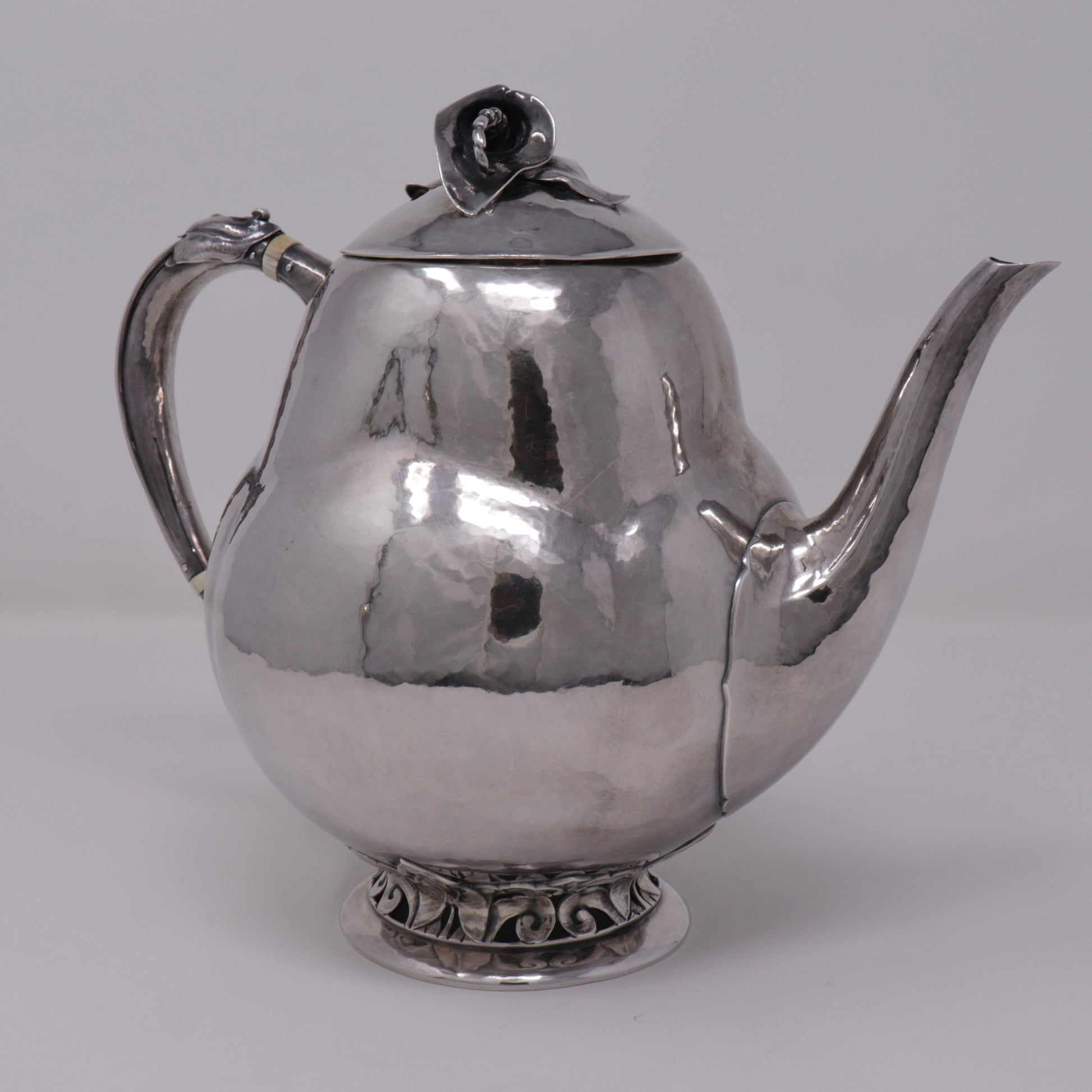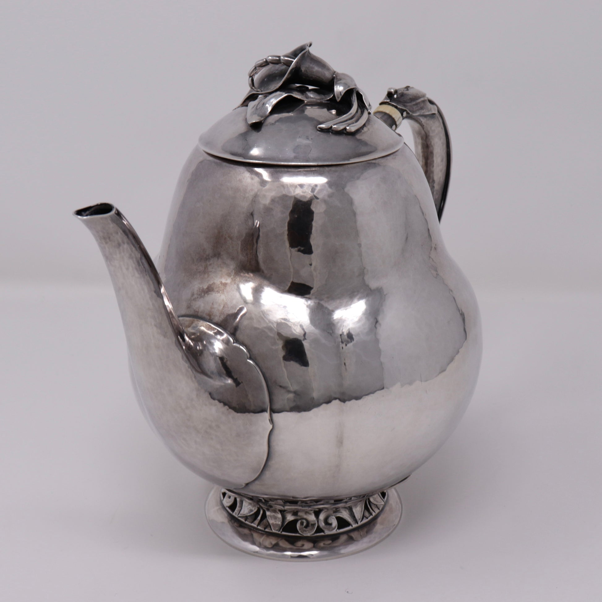 Estate Peer Smed Handwrought Sterling Silver Large Teapot with Jack and the Pulpit Motif