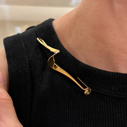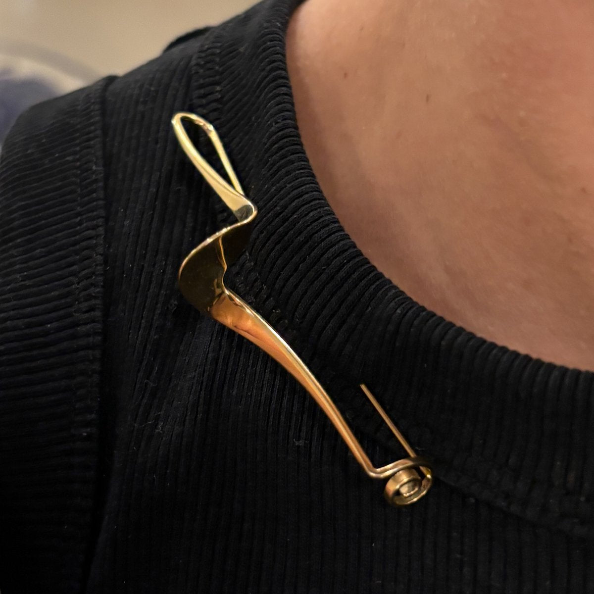 Estate Ronald Hayes Pearson Rare Forged 14K Gold Modernist Fibula Brooch