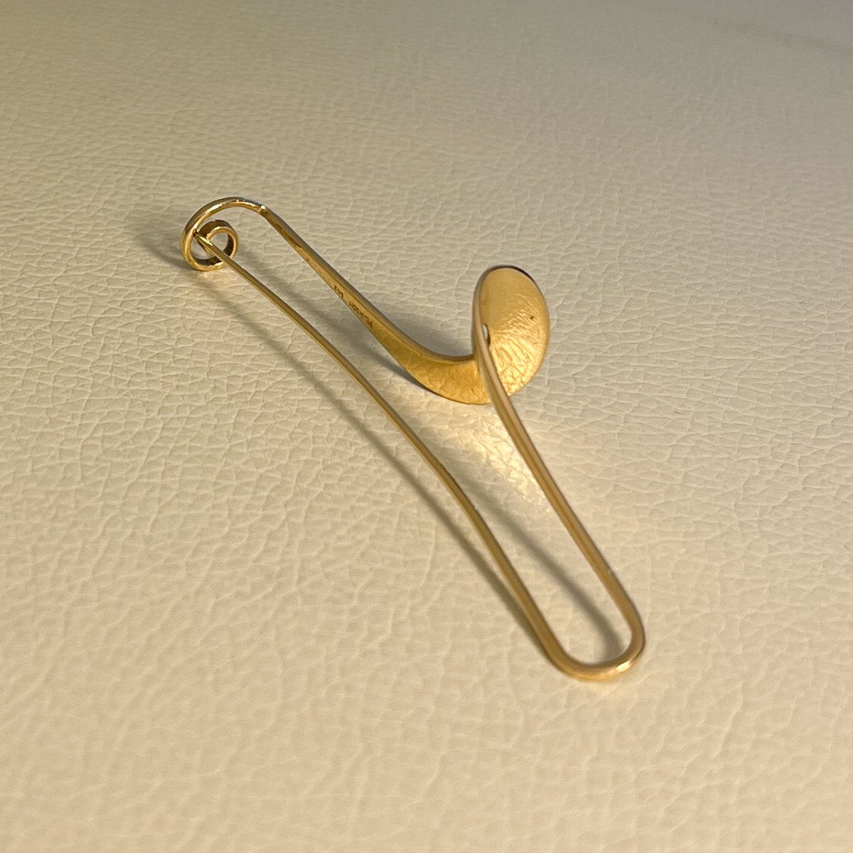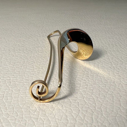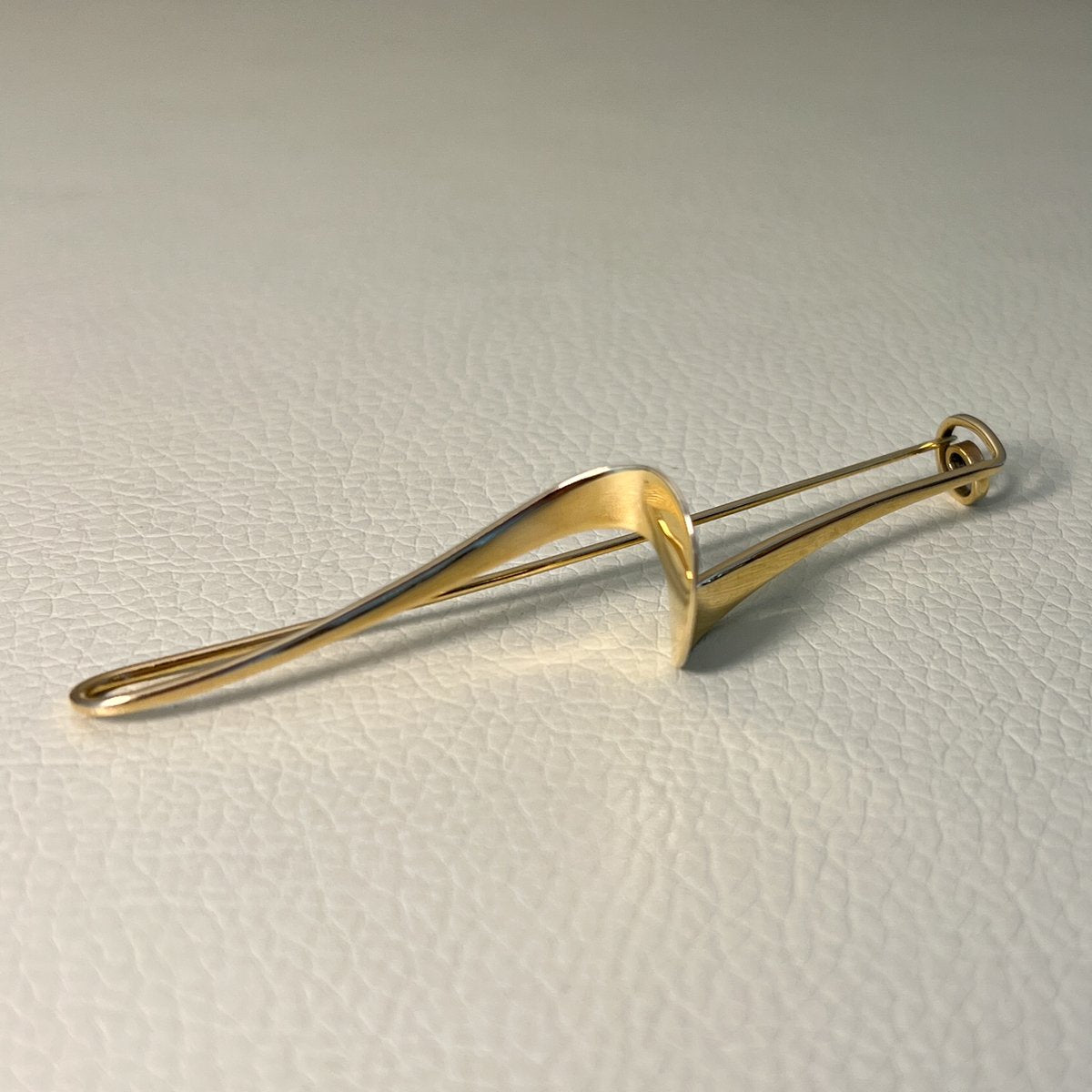 Rare modernist brooch/pin by well-known jeweler Ronald Hayes Pearson made of hand wrought 14K gold.