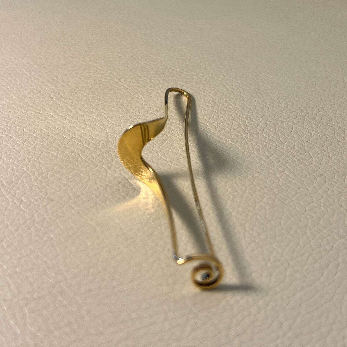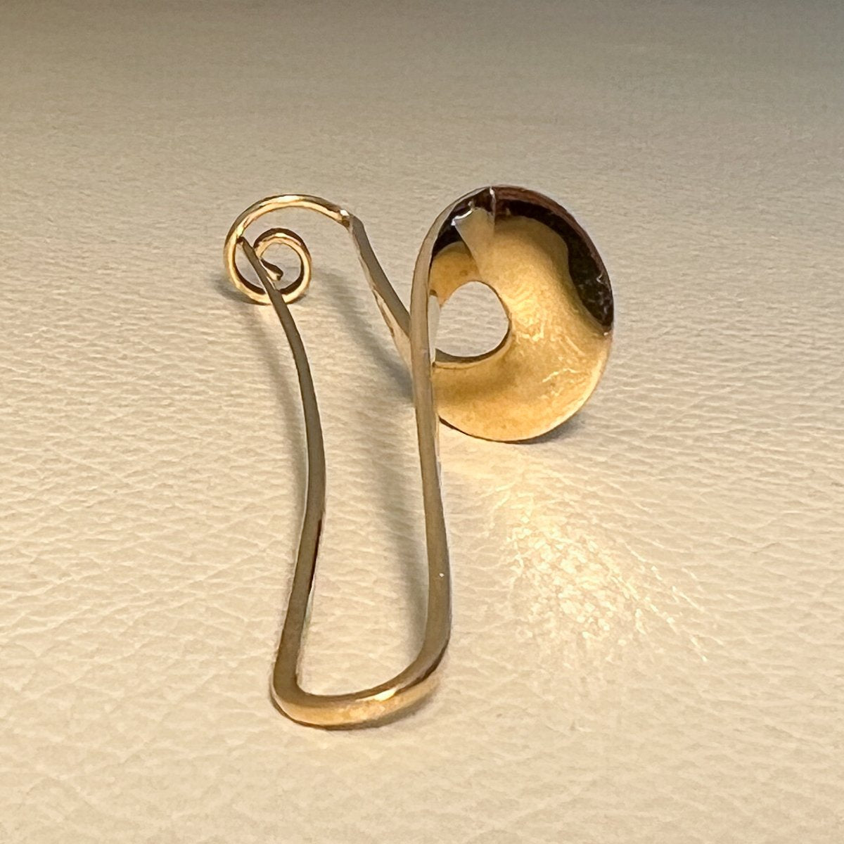 Modernist design with seemingly effortless curve out of a single piece of handmade gold.