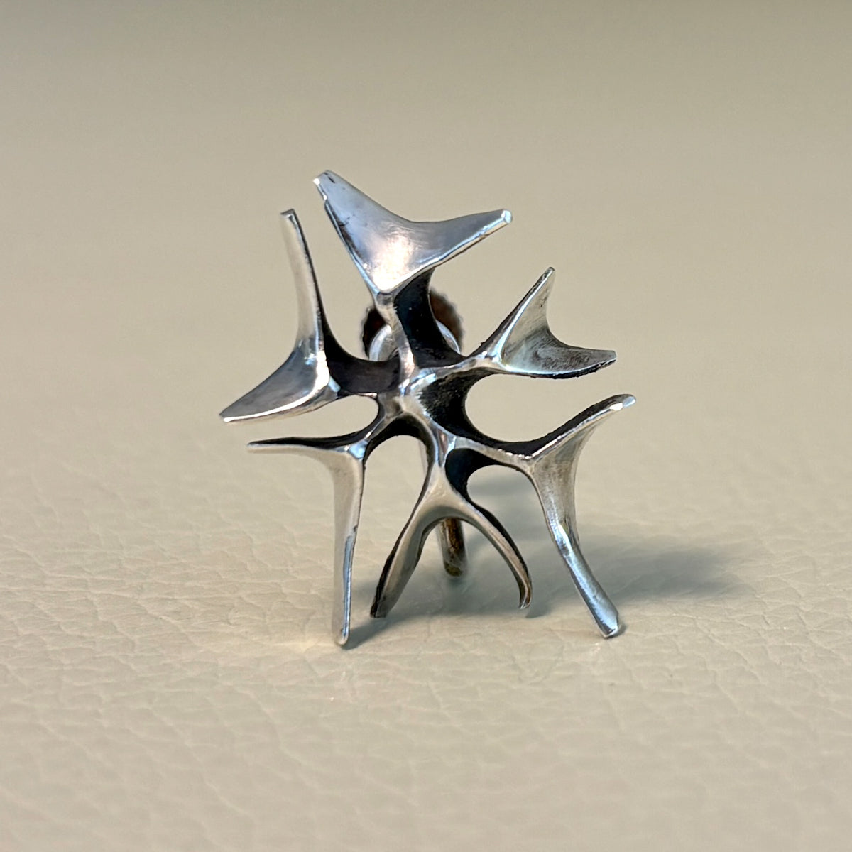 Unique sterling silver abstract earrings by American jewelry maker Ronald Hayes Pearson.