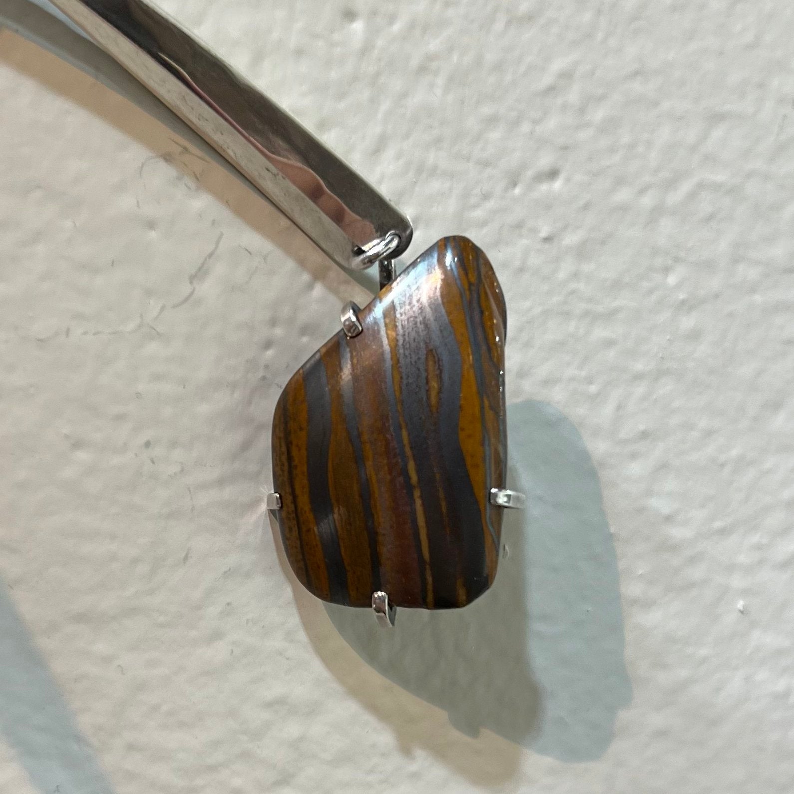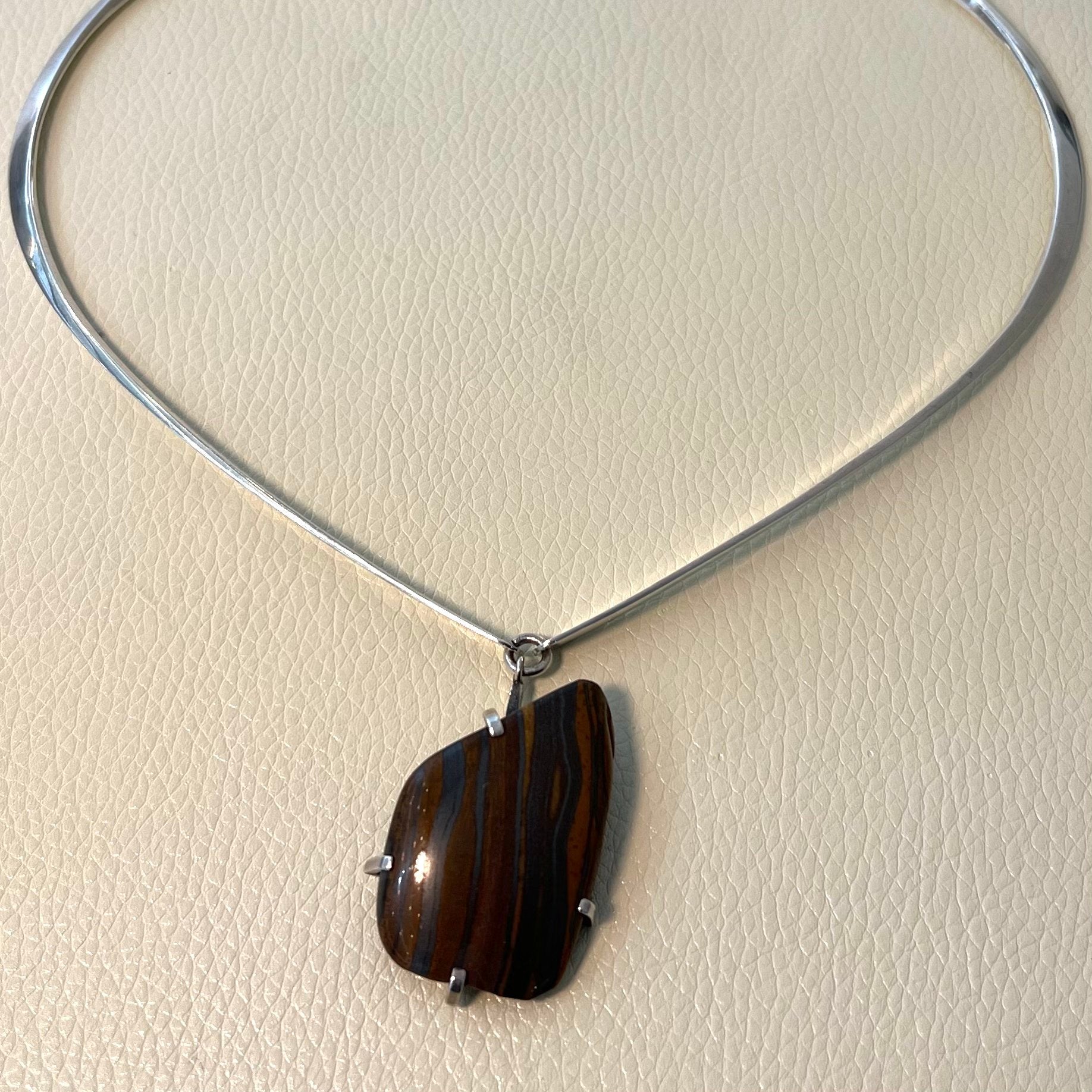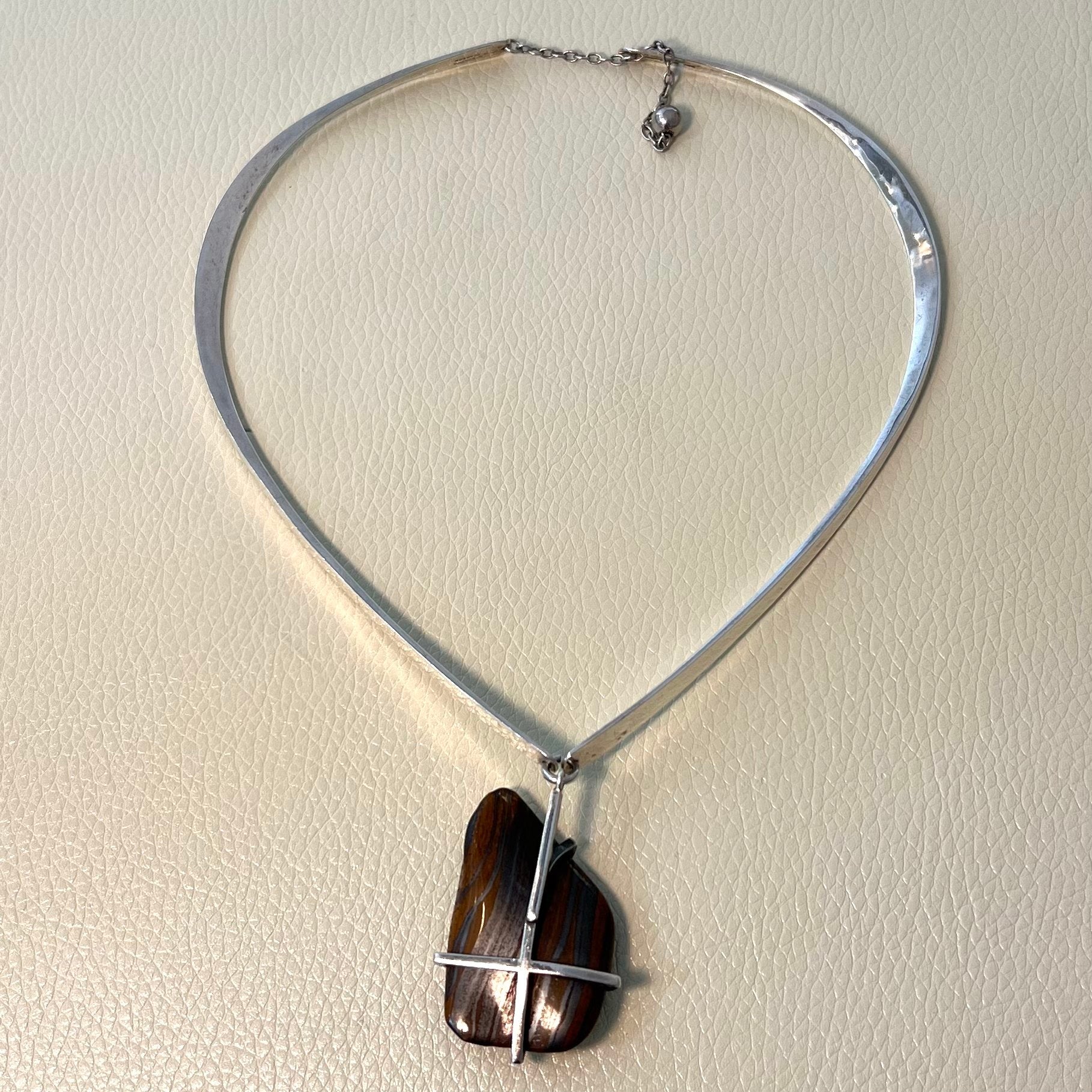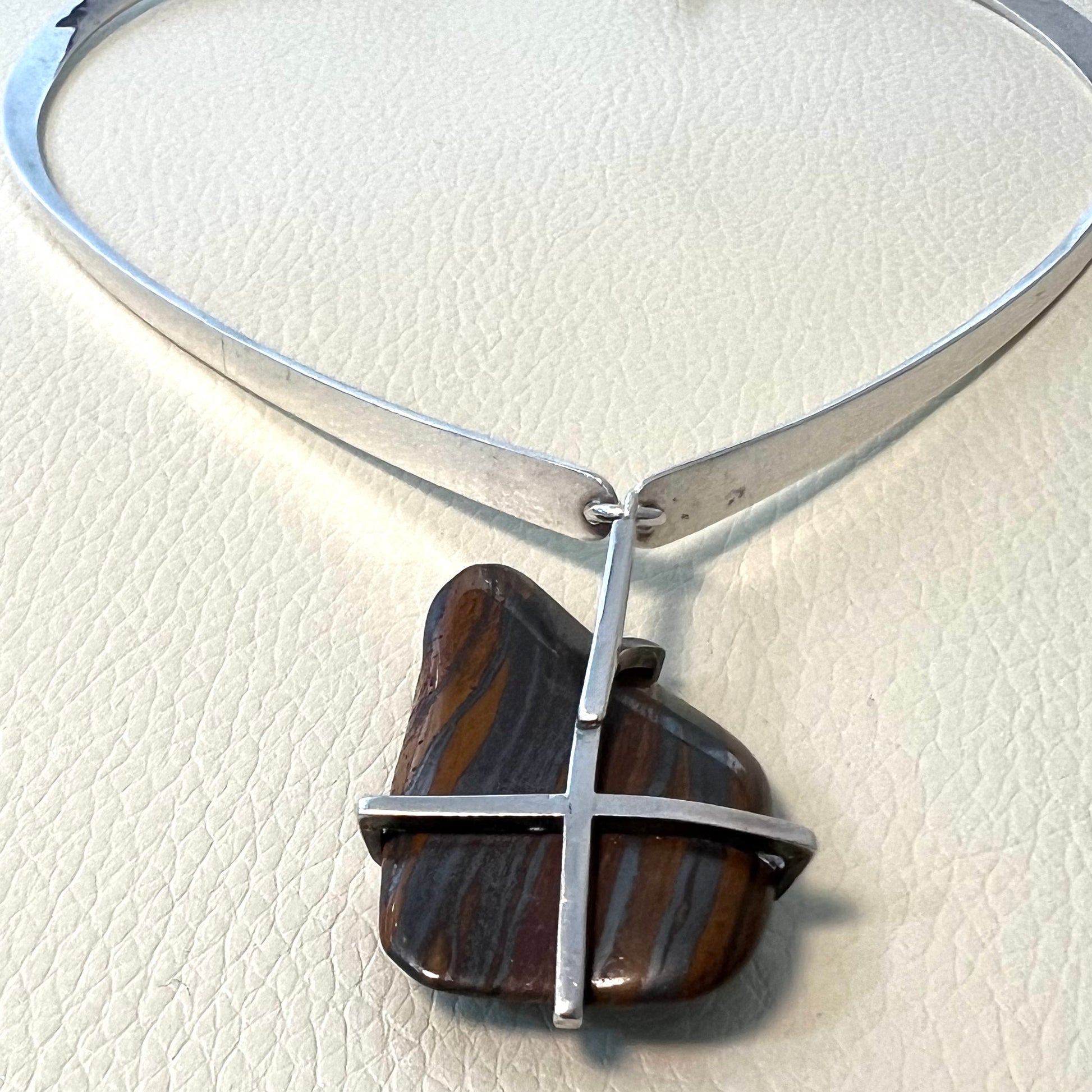 Estate Ronald Hayes Pearson Sterling Silver Hinged Neck Ring with Amorphic Shaped Natural Stone Pendant