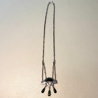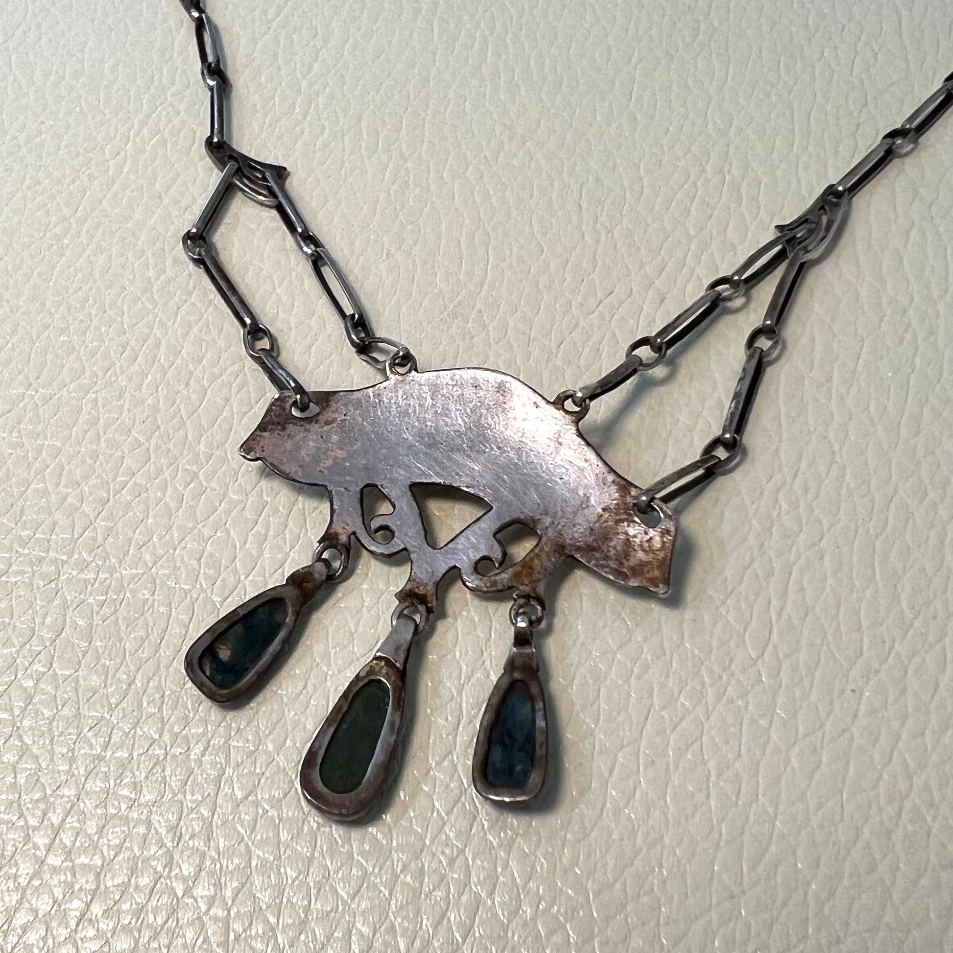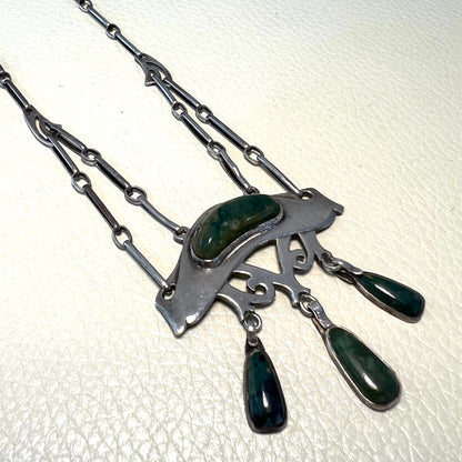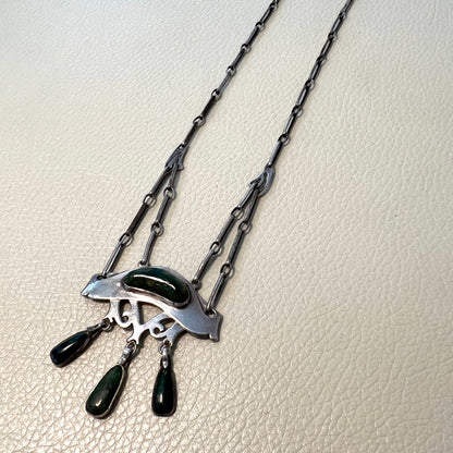 Estate Silver Jugendstil Pendant with Hardstone Art Nouveau Necklace