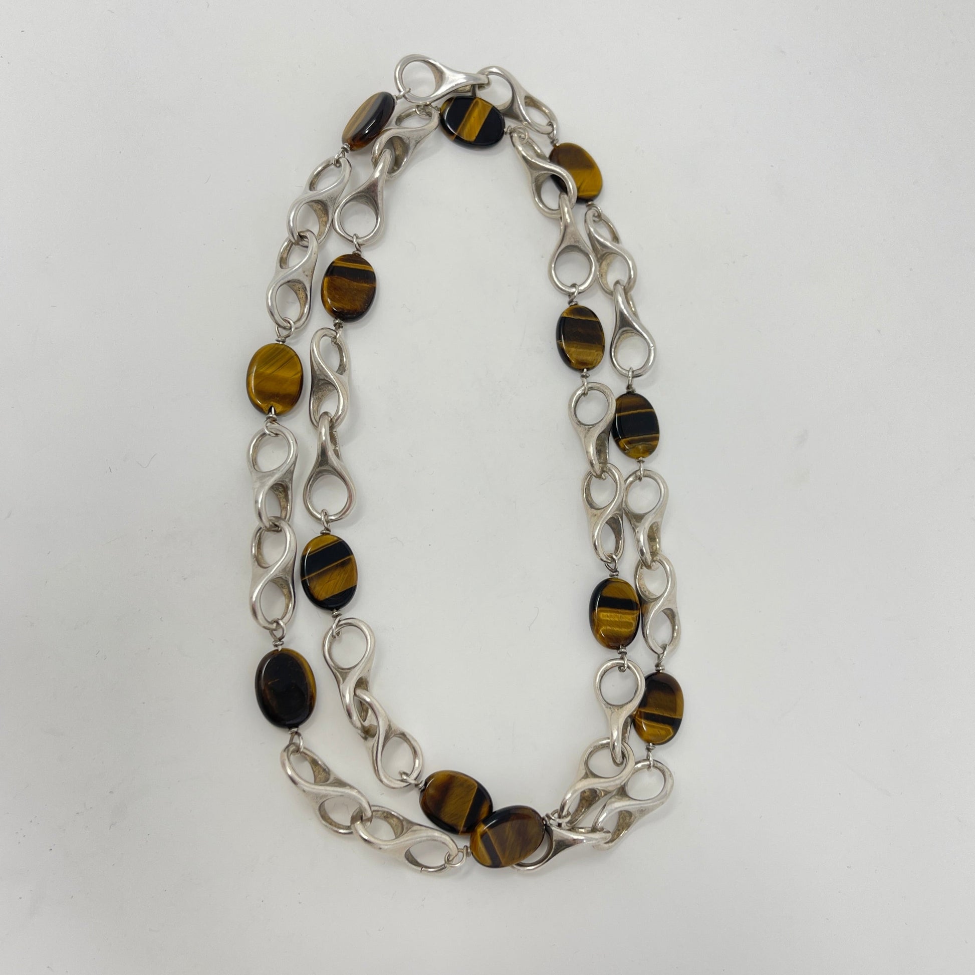 Estate Sterling Silver 3D Infinity Link Necklace with Tigers Eye