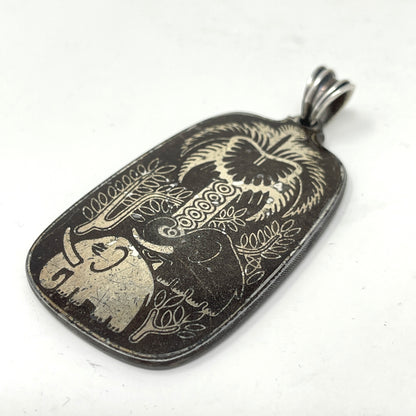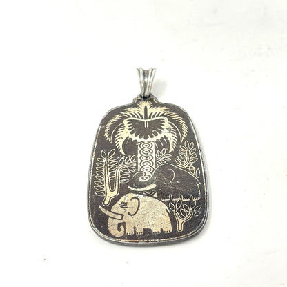 Estate Sterling Silver and Iron Two Elephants Pendant by Victor Island No 5023