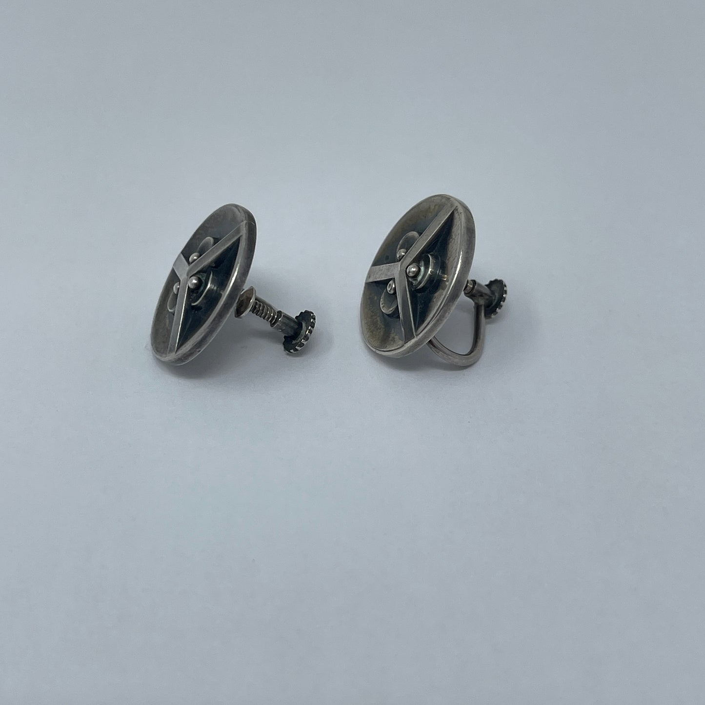 Estate Sterling Silver Art Deco Screw Back Earrings by Georg Jensen No 77